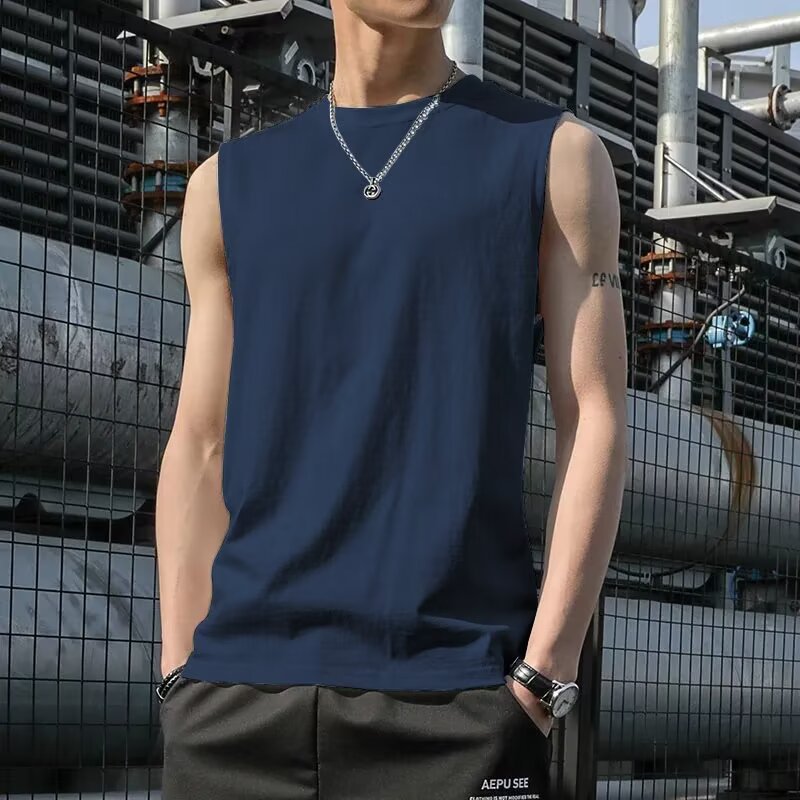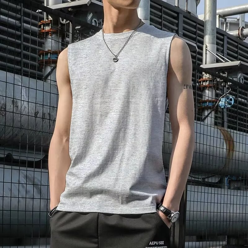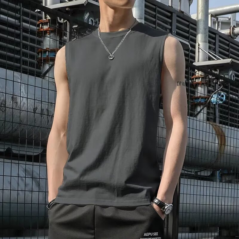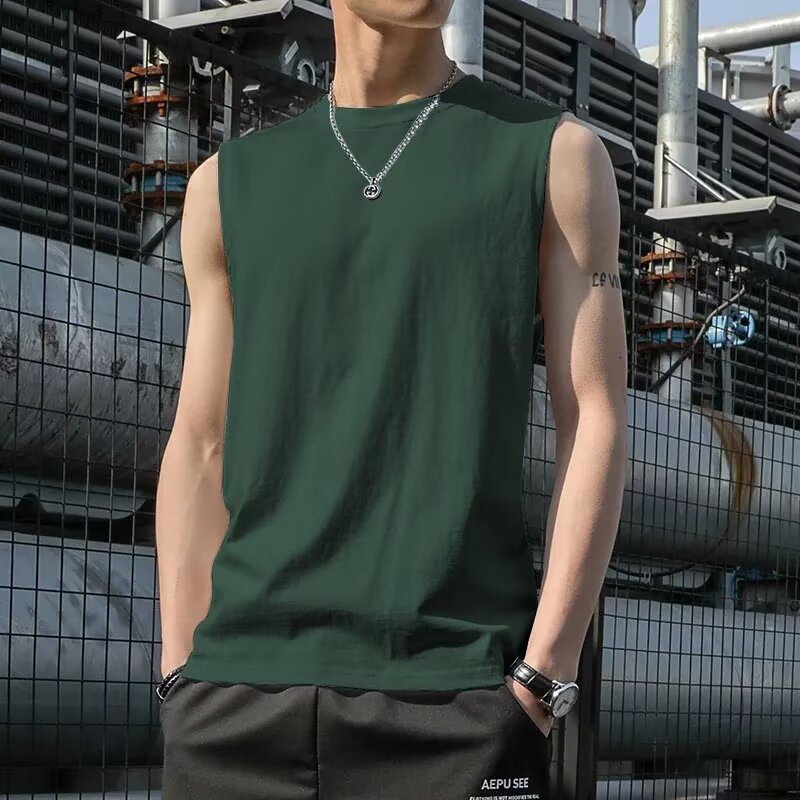 솔리드 컬러 조끼 남자 달리기 훈련 피트니스 탑 캐주얼 빠른 건조 남성용 허리 코트 소매 의류 스포츠