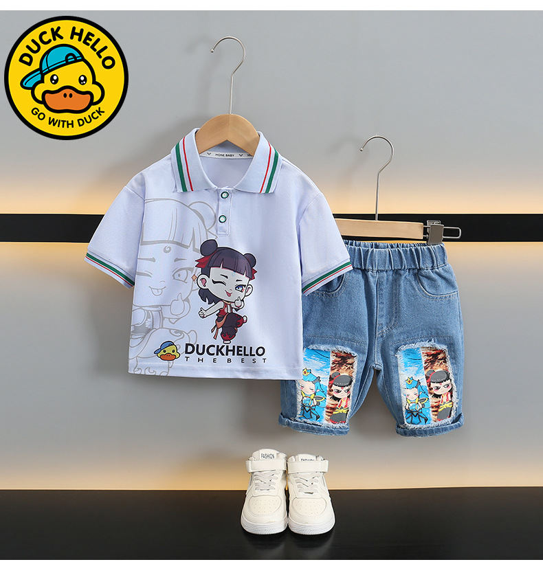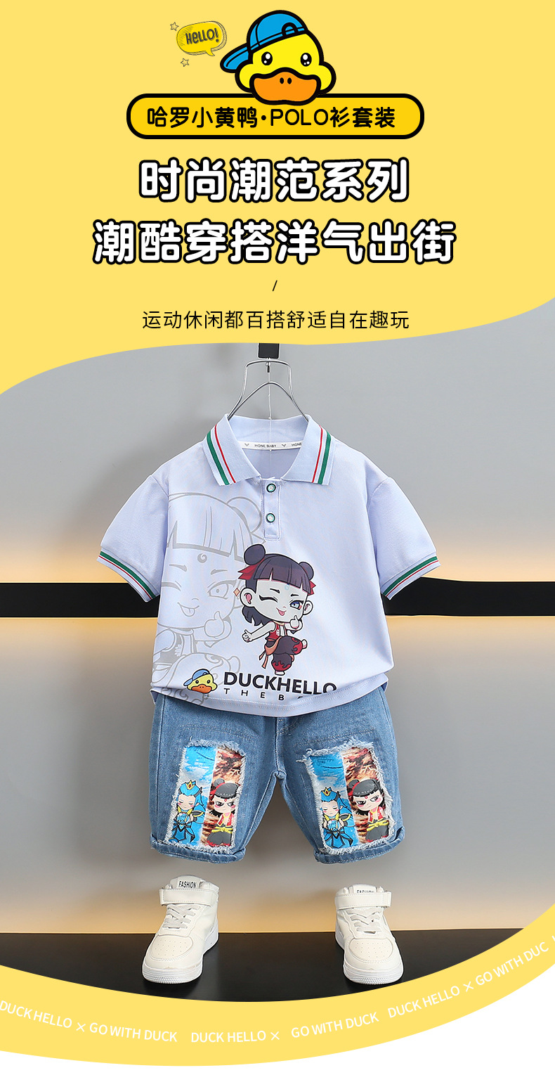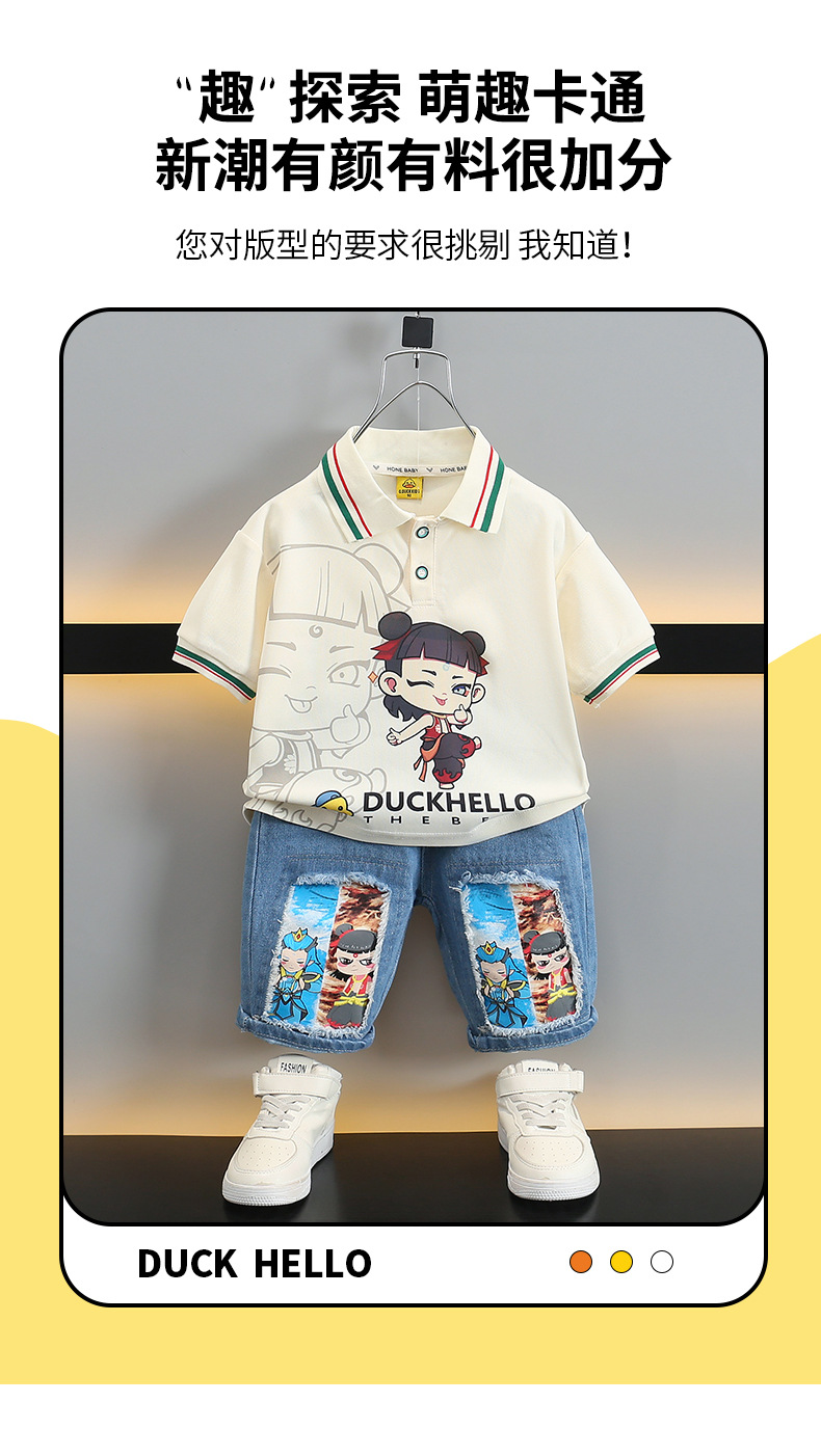 네자 옷 소년의 여름 세트 반팔 소년 아기의 서양식 어린이 여름 얇은 폴로 셔츠 데님 반바지스토어 가기