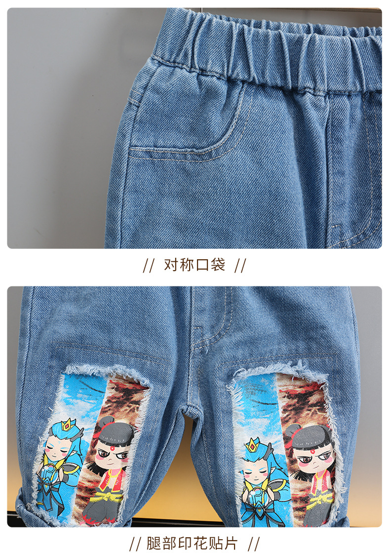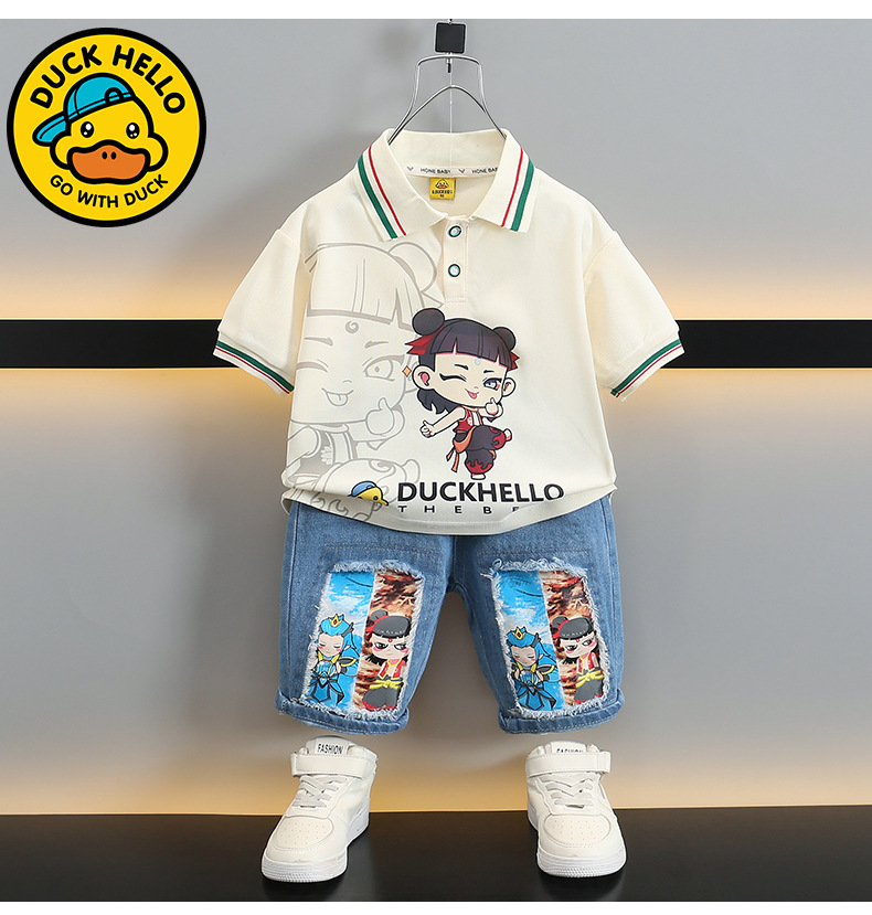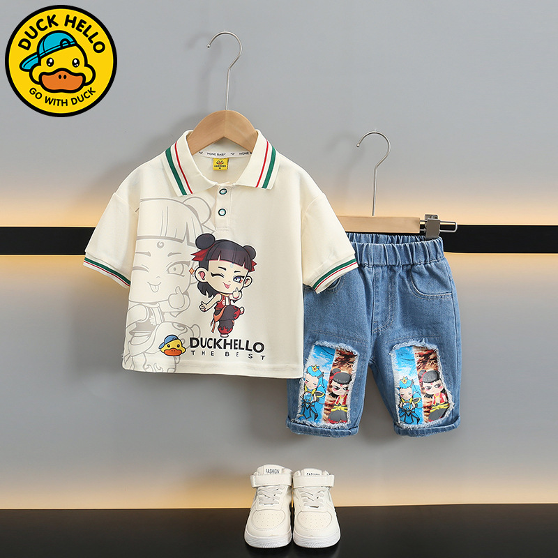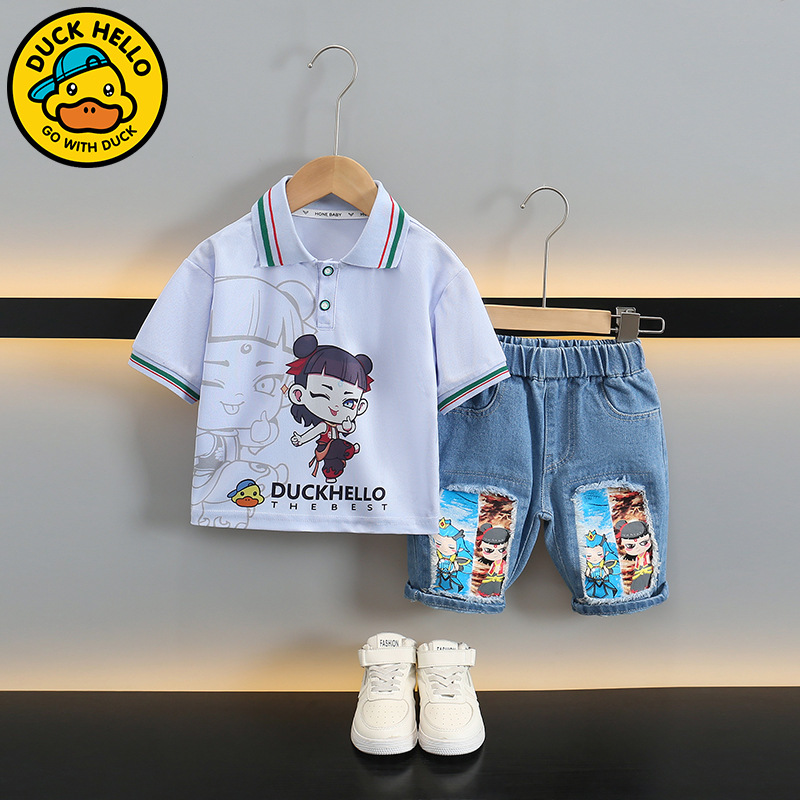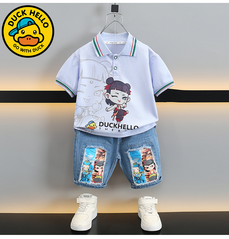 네자 옷 소년의 여름 세트 반팔 소년 아기의 서양식 어린이 여름 얇은 폴로 셔츠 데님 반바지스토어 가기
