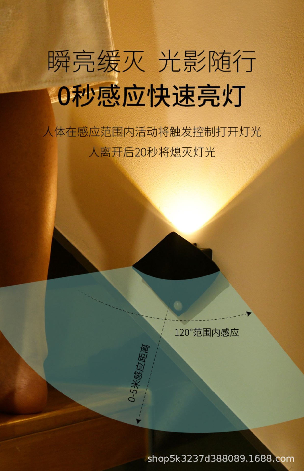 국경 간 지능형 인체 센서 램프 침실 복도 계단 거실 벽 램프 신발 캐비닛 옷장 조명 눈 보호 야간 조명스토어 가기