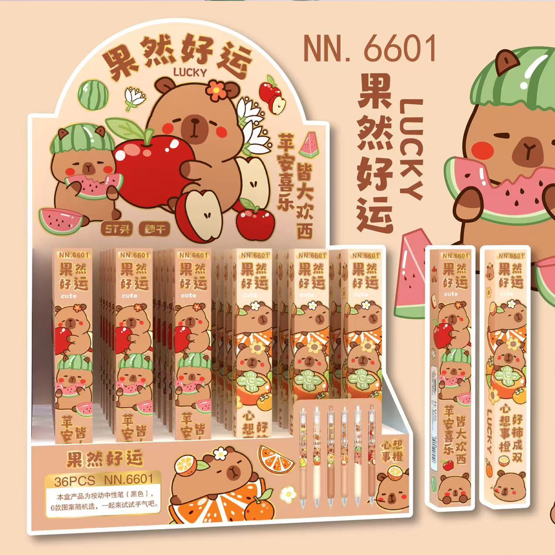 새로운 6601 Kapibara 블라인드 박스 펜 크리 에이 티브 만화 귀여운 확실히 행운의 젤 펜 럭키 크로스 보더 펜스토어 가기
