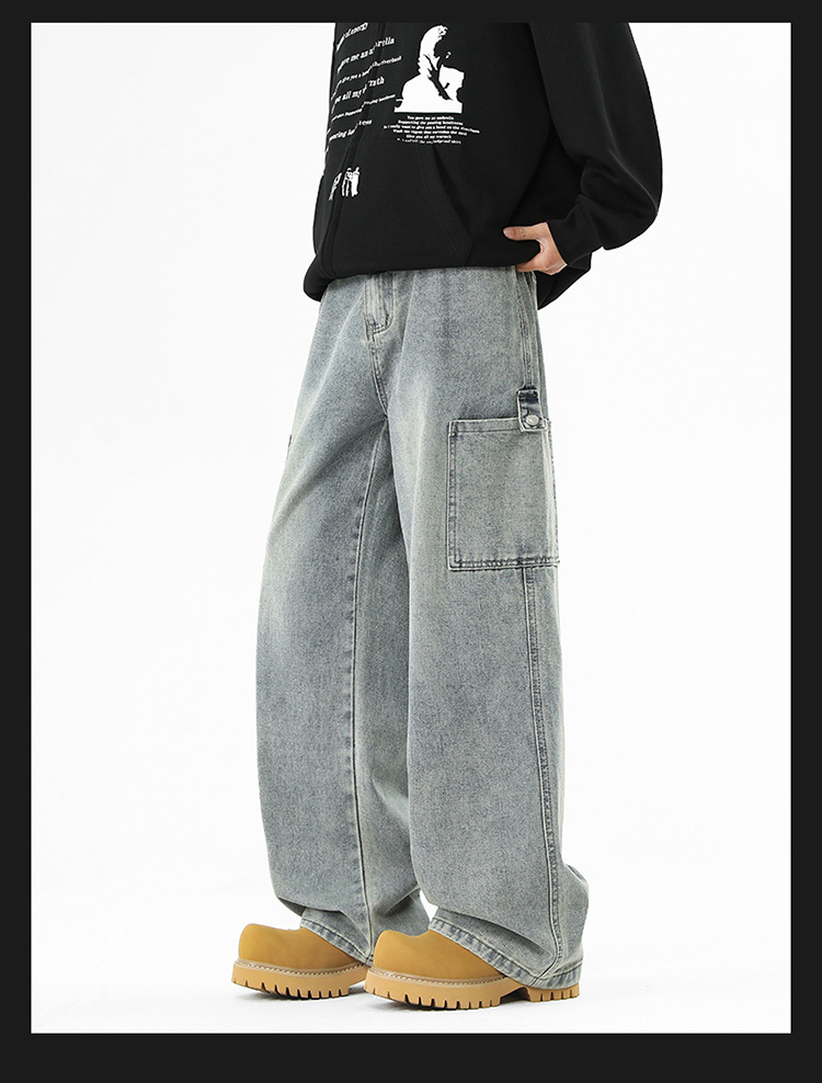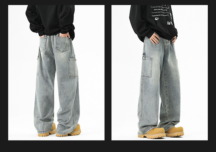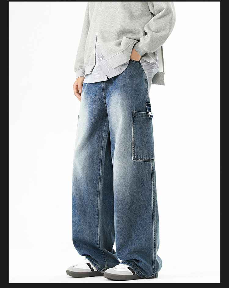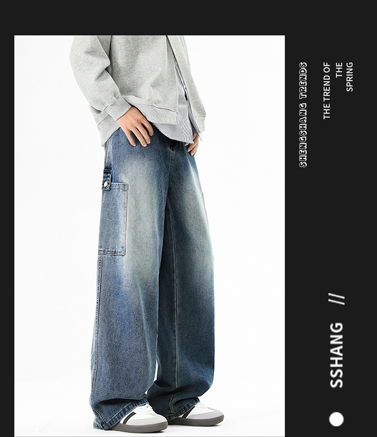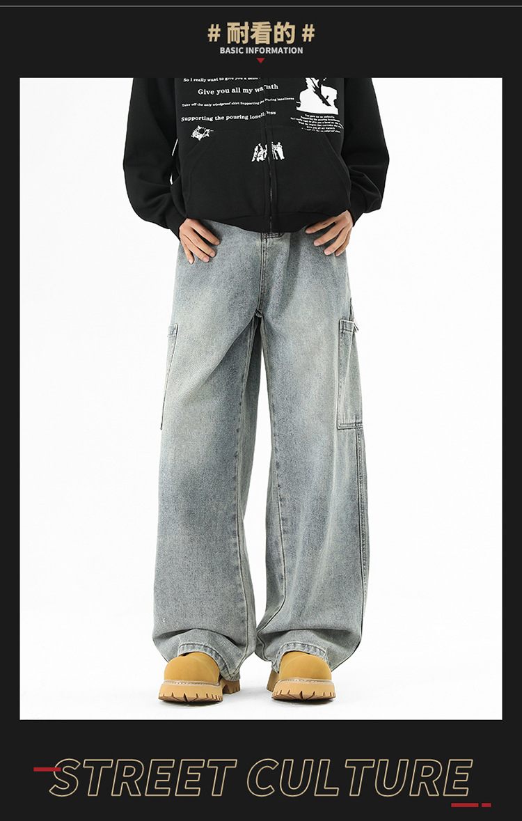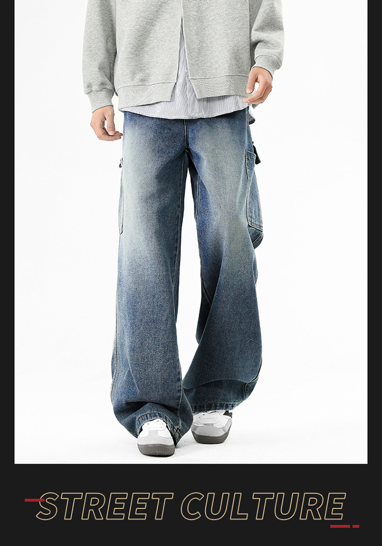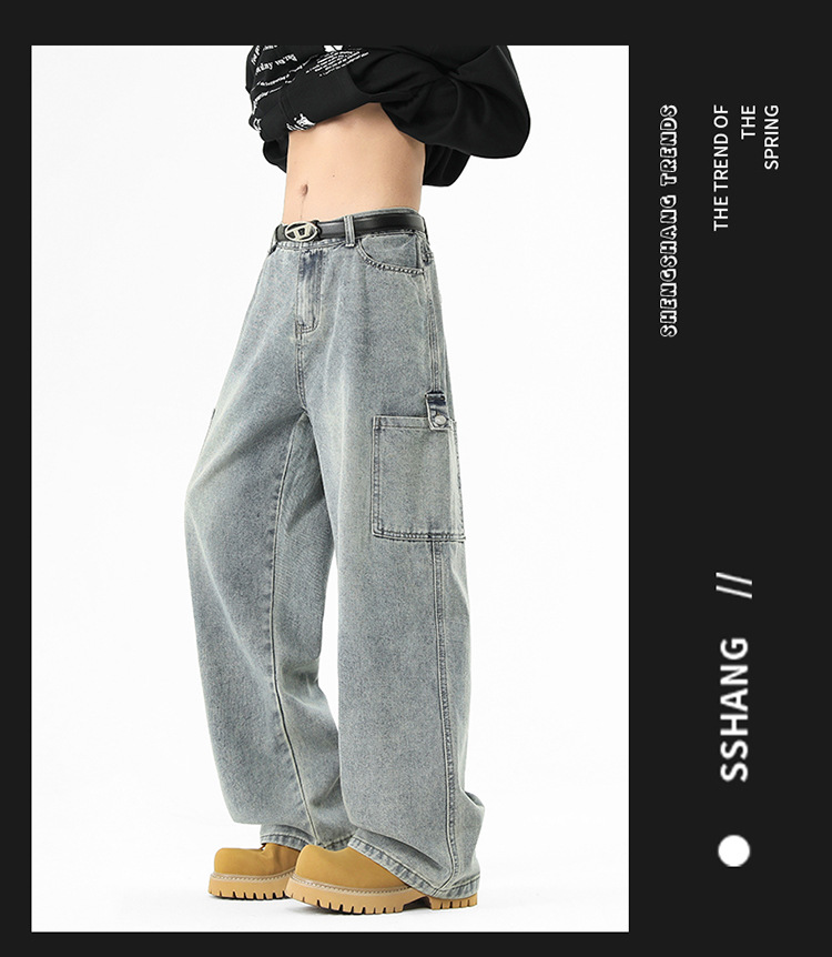 아메리칸 스타일 툴링 청바지 남성 봄 2025 새로운 스타일 세탁 된 스트레이트 캐주얼 바지 유행 브랜드 남성용 루즈 와이드 레그 바지스토어 가기
