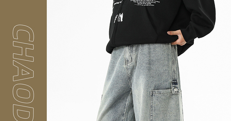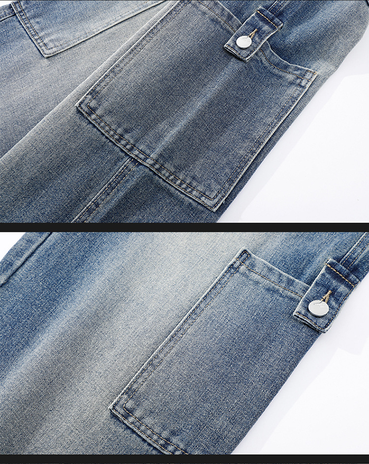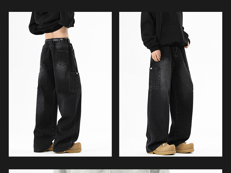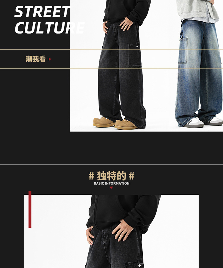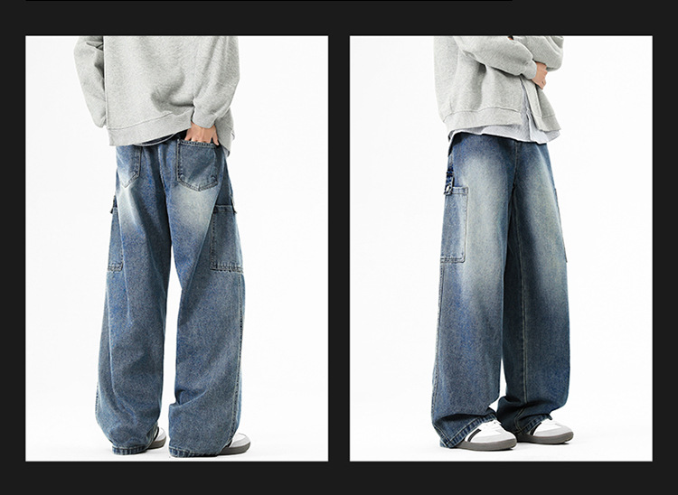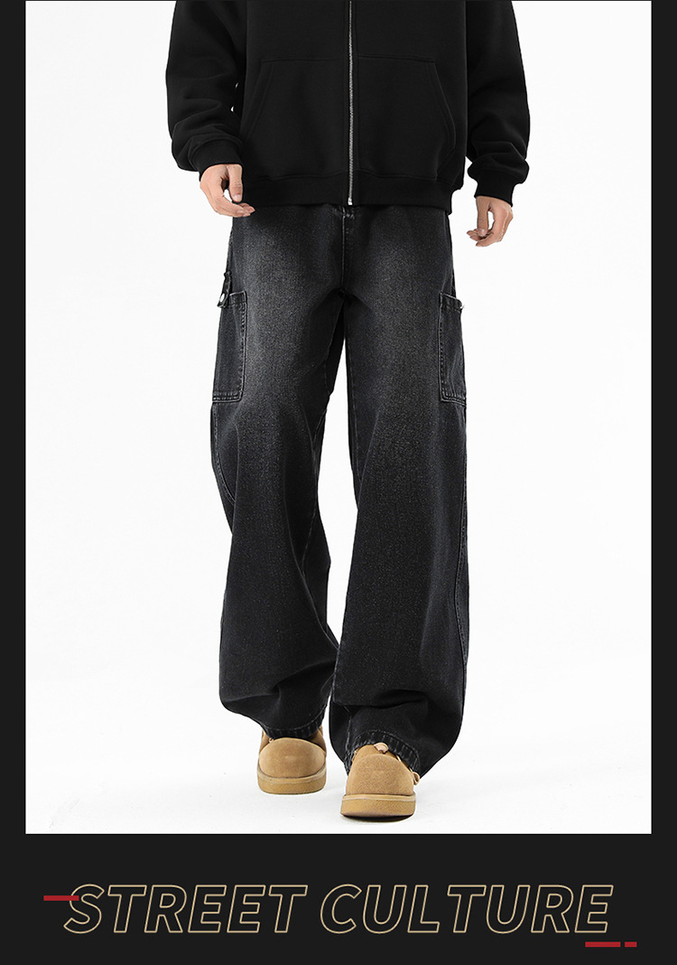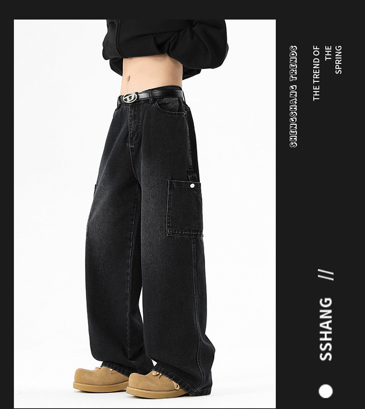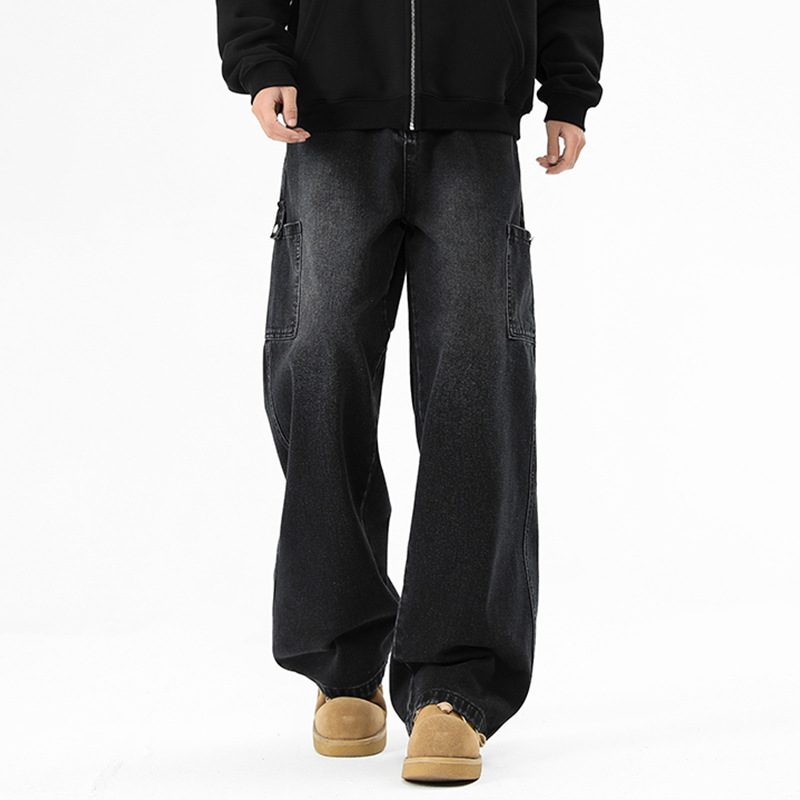 아메리칸 스타일 툴링 청바지 남성 봄 2025 새로운 스타일 세탁 된 스트레이트 캐주얼 바지 유행 브랜드 남성용 루즈 와이드 레그 바지스토어 가기