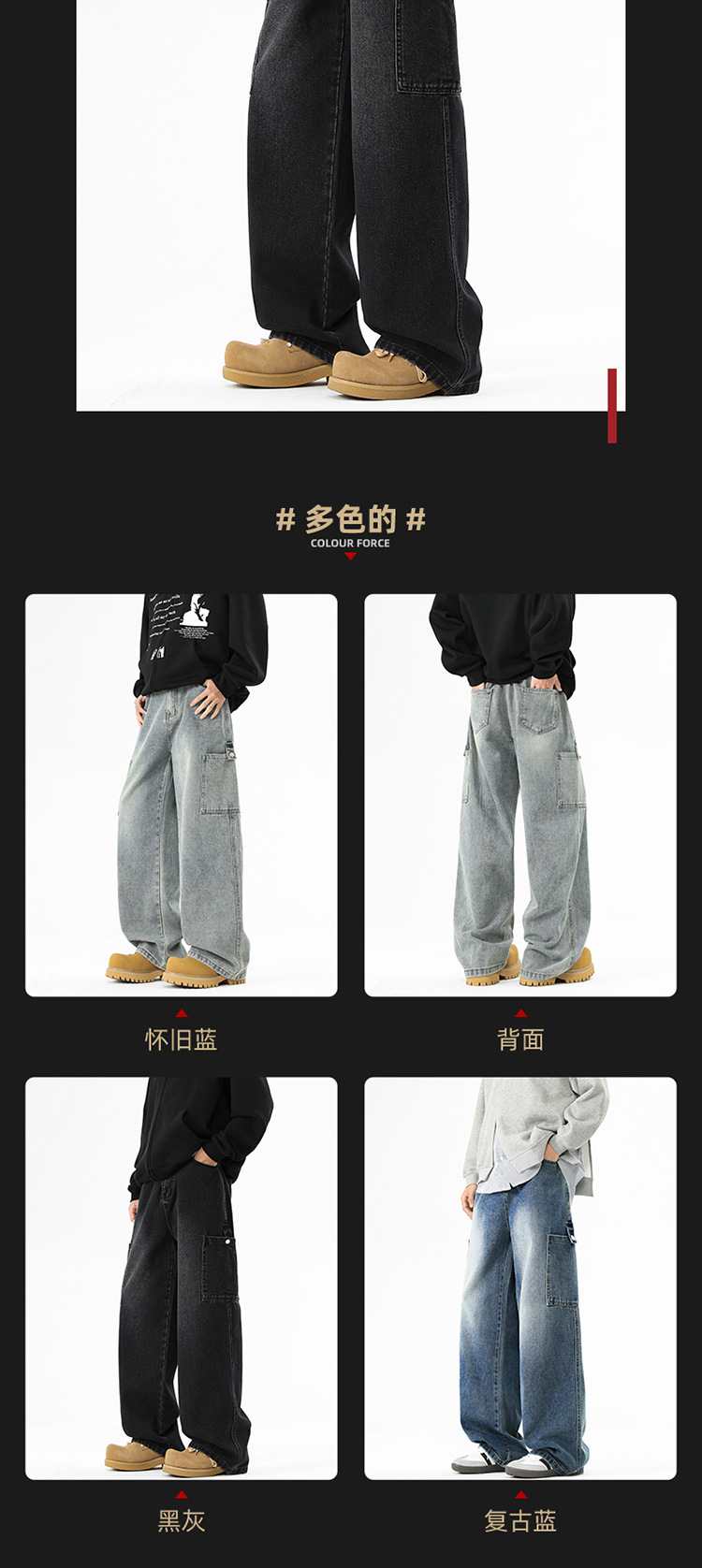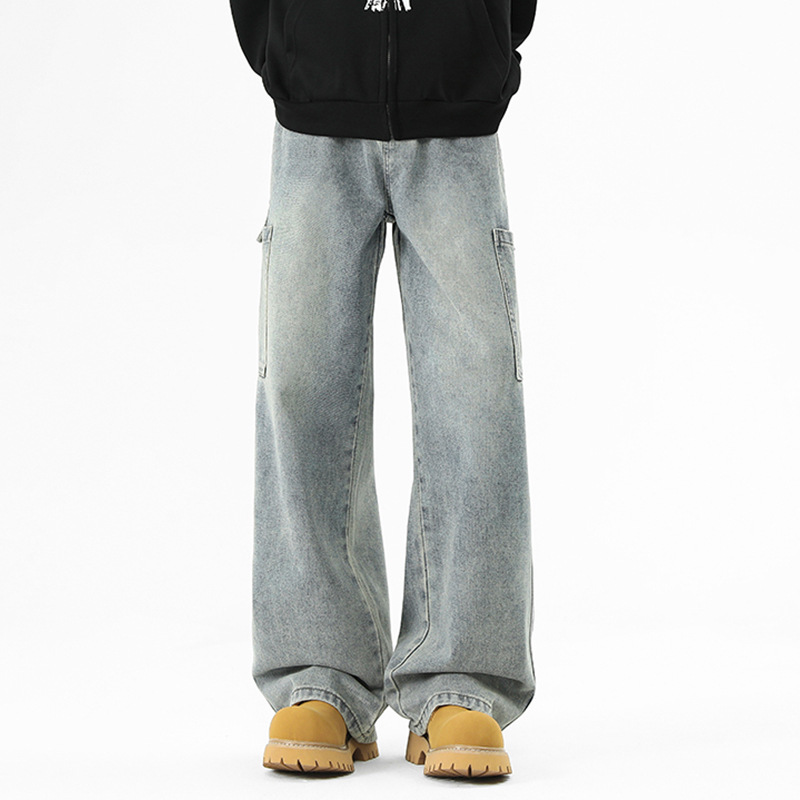 아메리칸 스타일 툴링 청바지 남성 봄 2025 새로운 스타일 세탁 된 스트레이트 캐주얼 바지 유행 브랜드 남성용 루즈 와이드 레그 바지