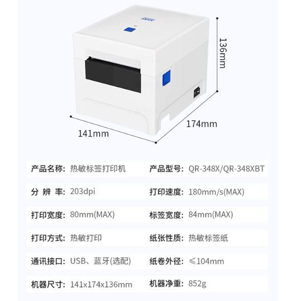 QiRui QR-348/365/368/488/588 QR-410S/310S 다양한 산업용 라벨 프린터