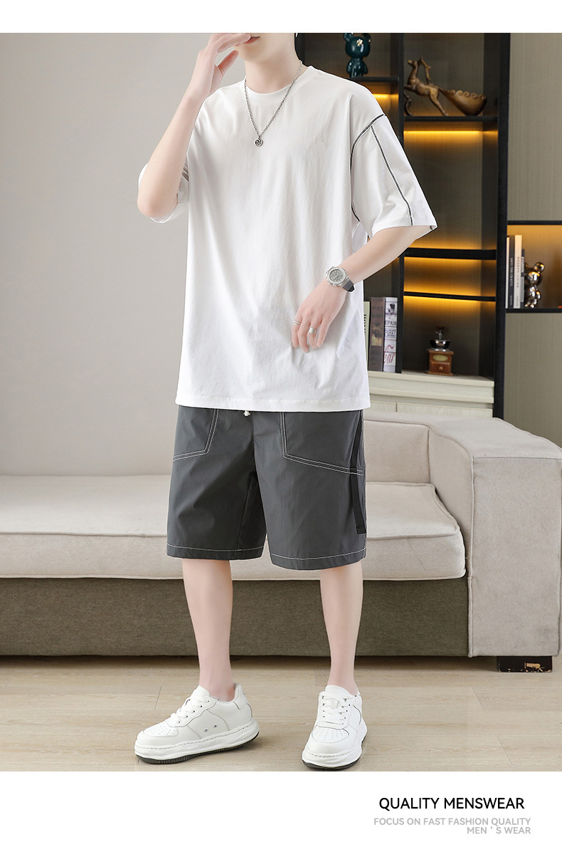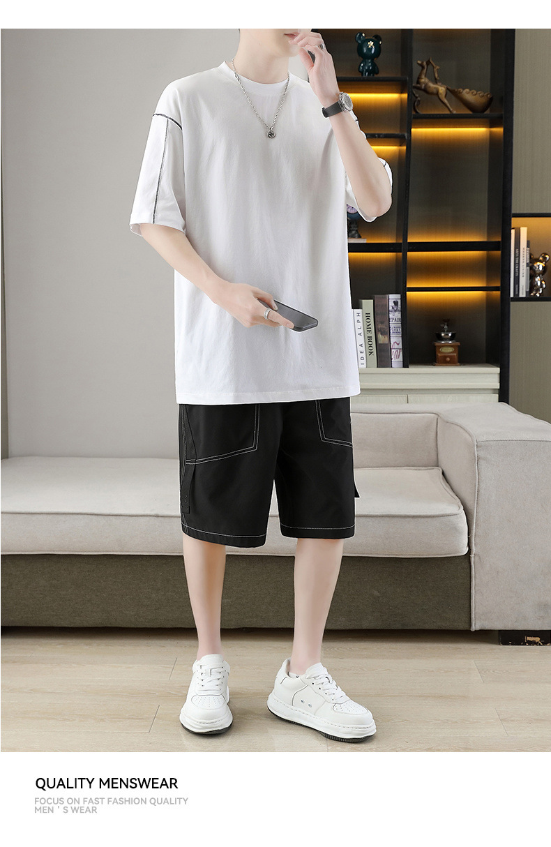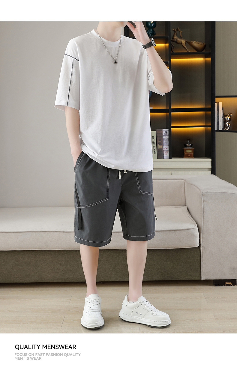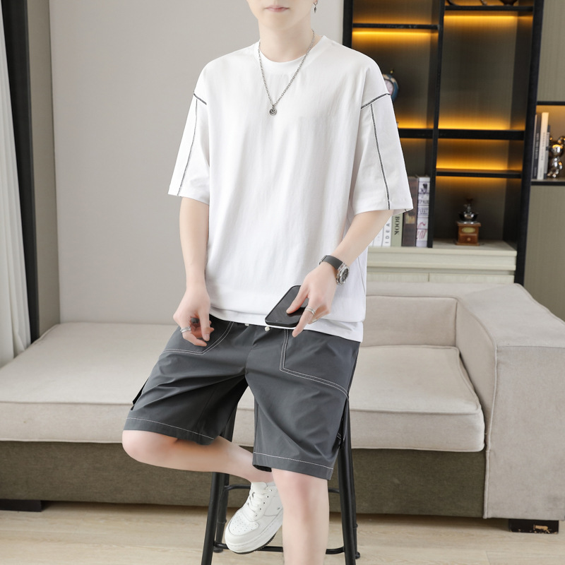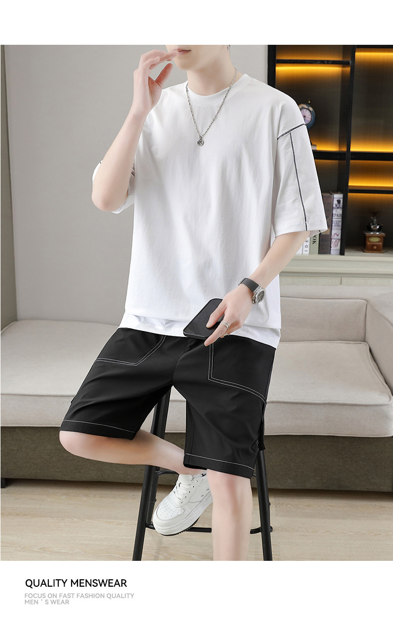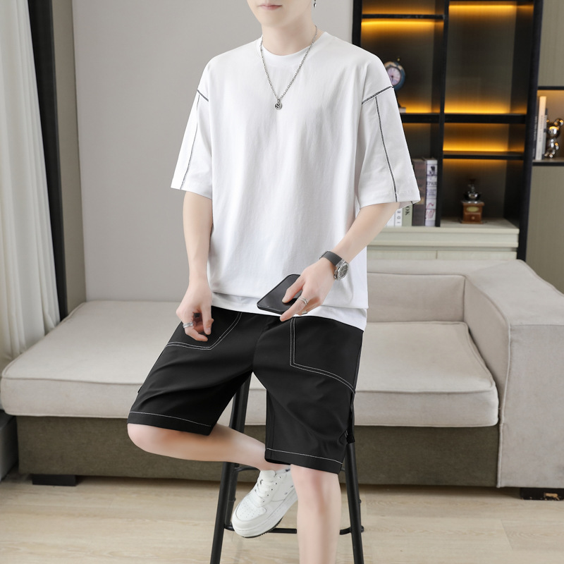 잘 생긴 남자 여름 짧은 소매와 뚱뚱한 여분의 큰 뚱뚱한 반바지가 달린 초대형 아이스 실크 세트 남성용 여름 세트스토어 가기