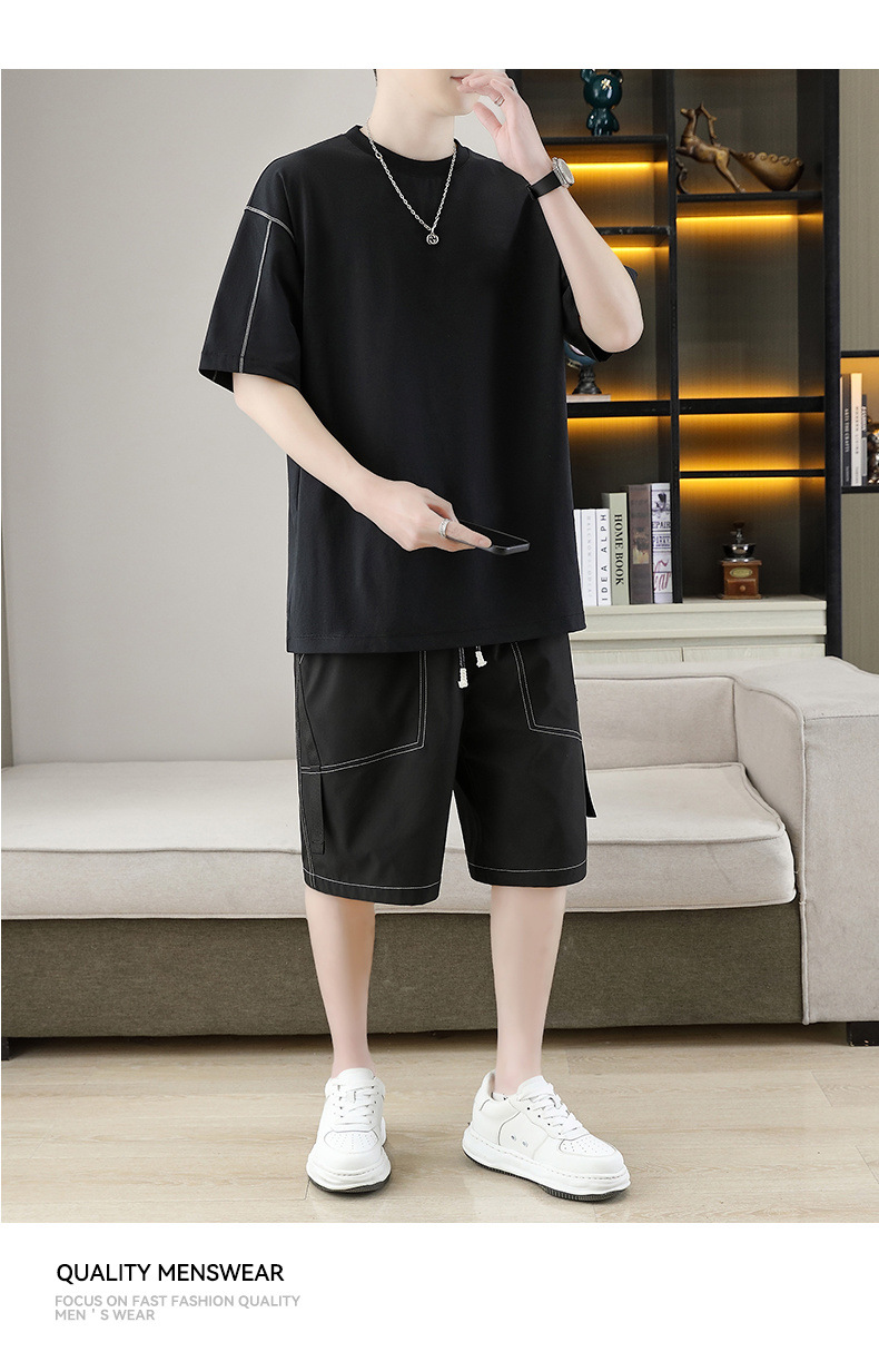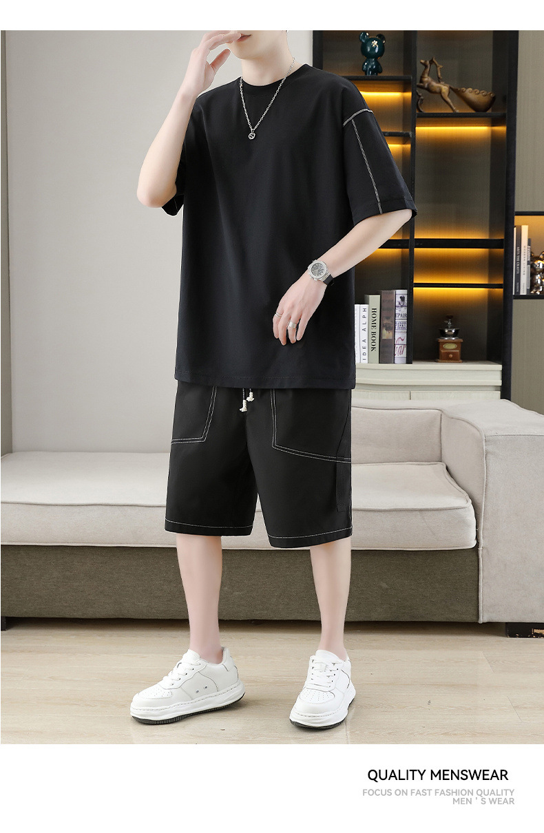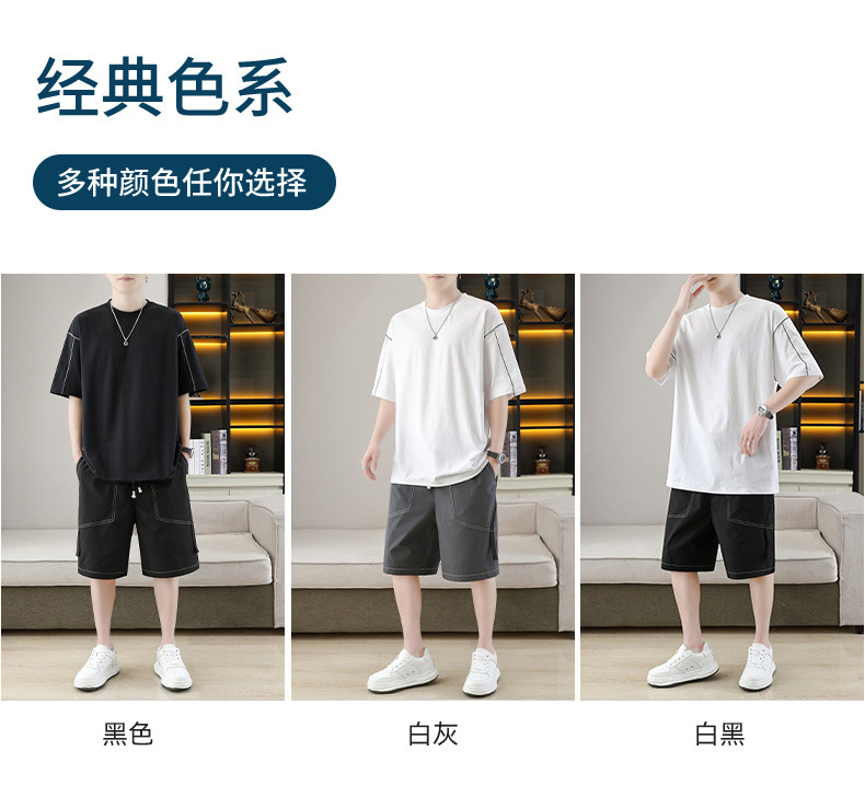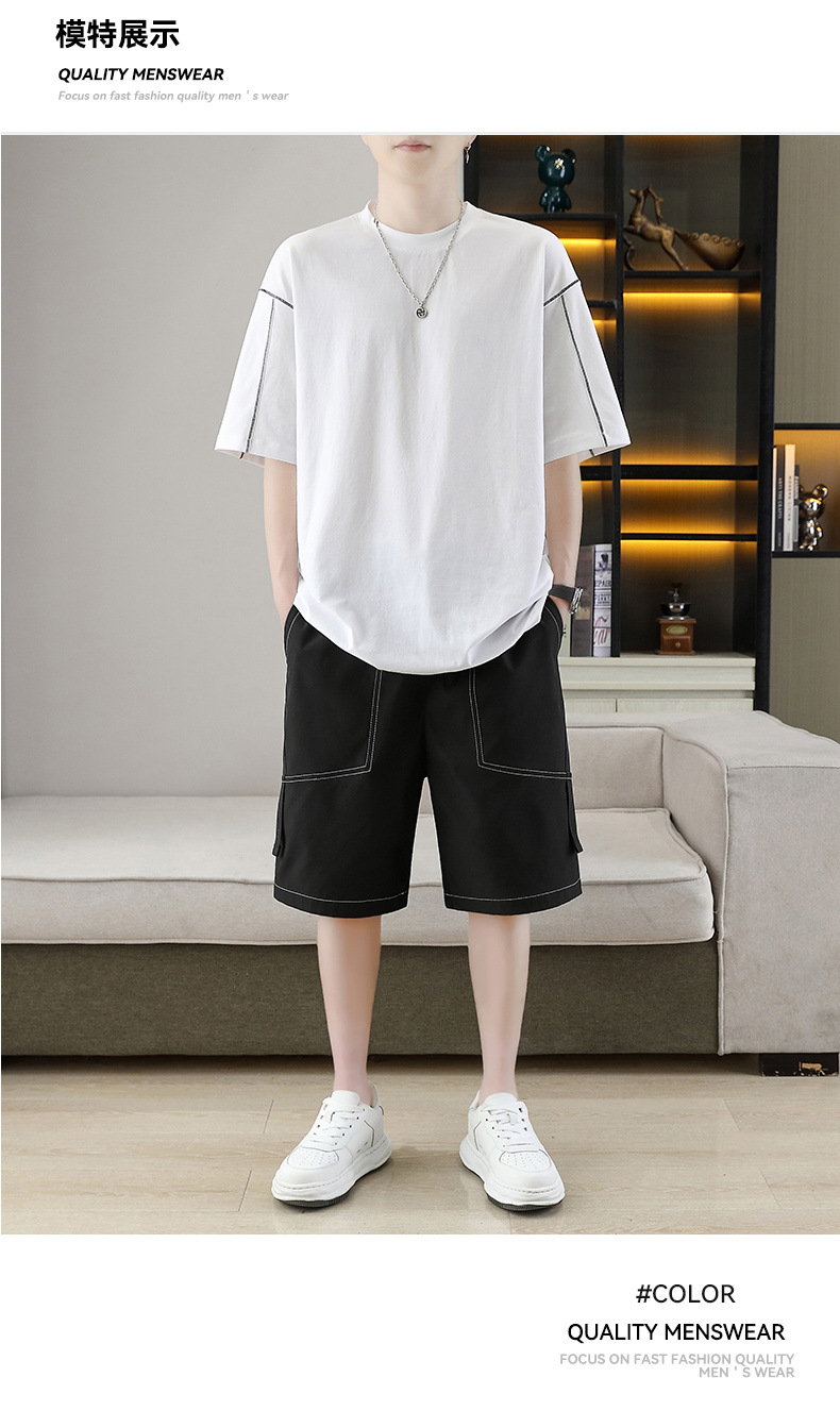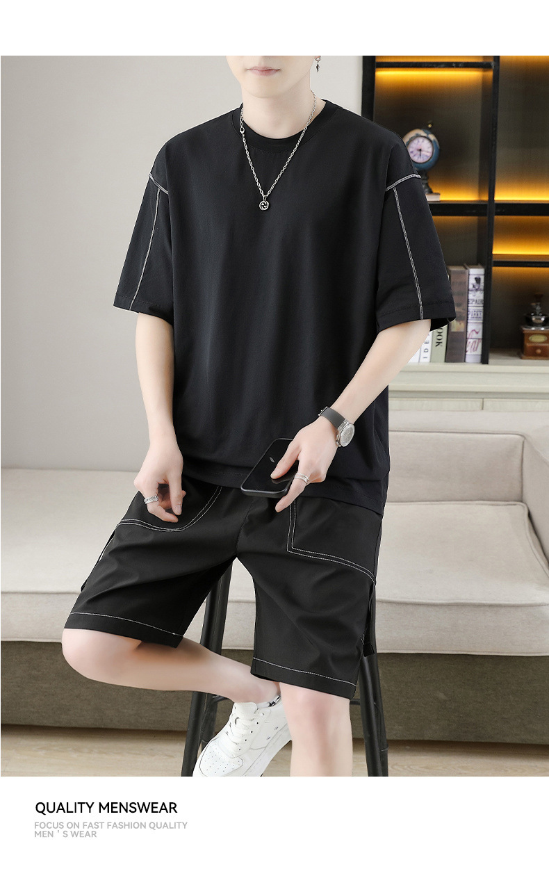 잘 생긴 남자 여름 짧은 소매와 뚱뚱한 여분의 큰 뚱뚱한 반바지가 달린 초대형 아이스 실크 세트 남성용 여름 세트스토어 가기