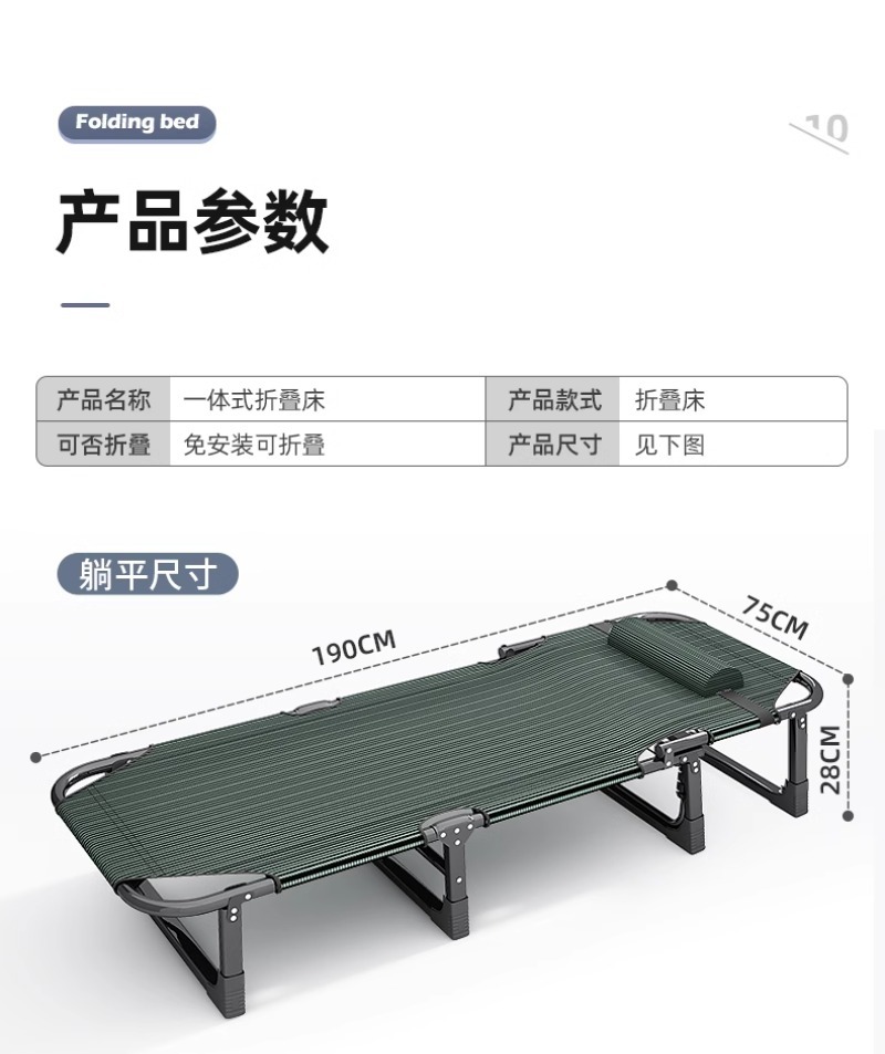 점심 휴식 접이식 침대 사무실 싱글 침대 간단한 동반 작은 침대 휴대용 야외 육군 침대 낮잠 스테이션스토어 가기