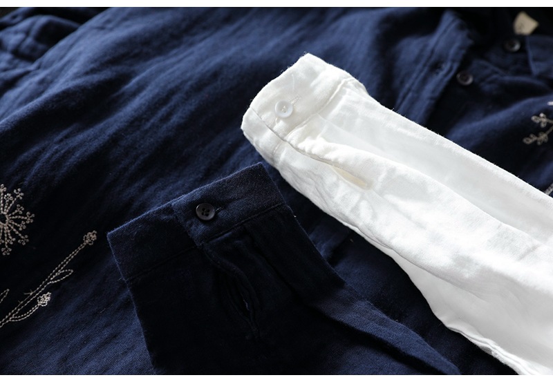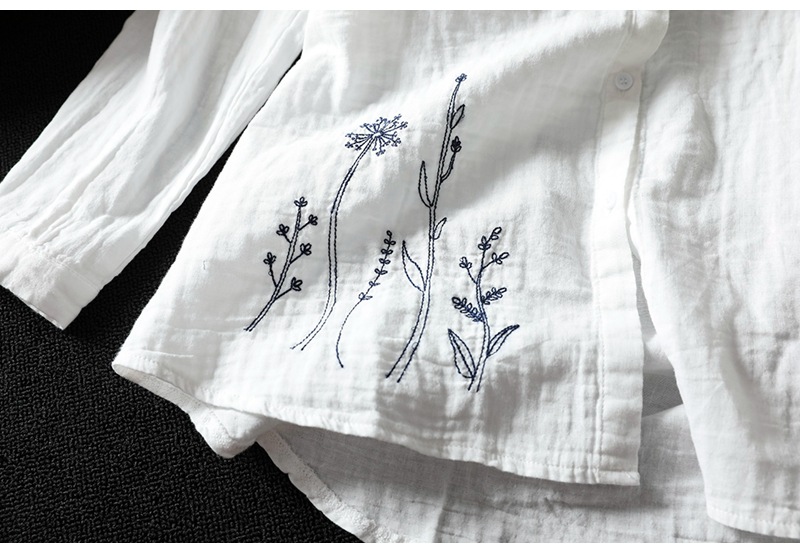 더블 레이어 코튼 원사 셔츠 여성의 새로운 예술적 복고풍 자수 옷깃 단색 긴팔 셔츠 탑스토어 가기