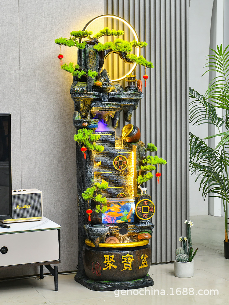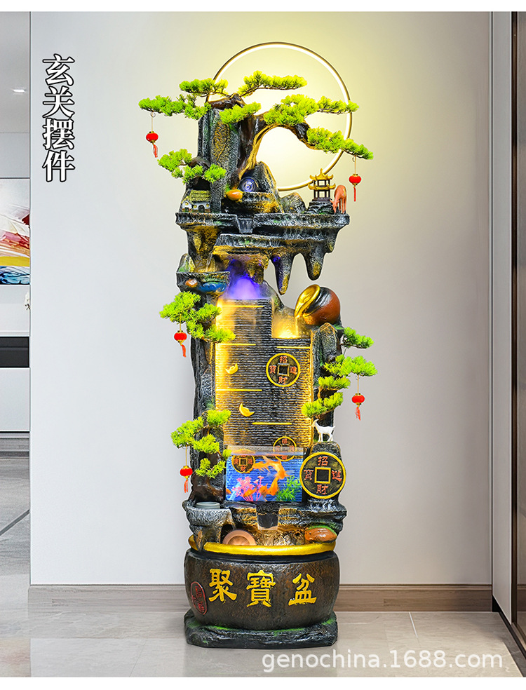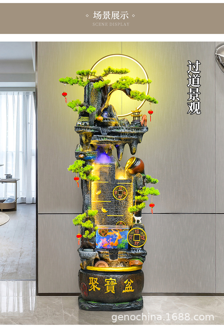 중국 스타일 워터 커튼 벽 물고기 탱크 스크린 실내 분수 락 가짜 흐르는 물 장식품 바닥에 흐르는 물 장치 물 순환 풍경-5