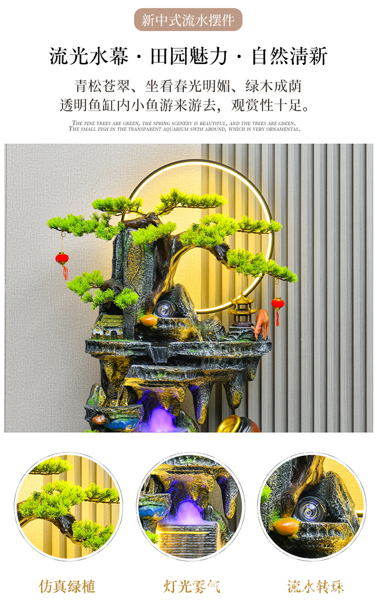 중국 스타일 워터 커튼 벽 물고기 탱크 스크린 실내 분수 락 가짜 흐르는 물 장식품 바닥에 흐르는 물 장치 물 순환 풍경-5스토어 가기