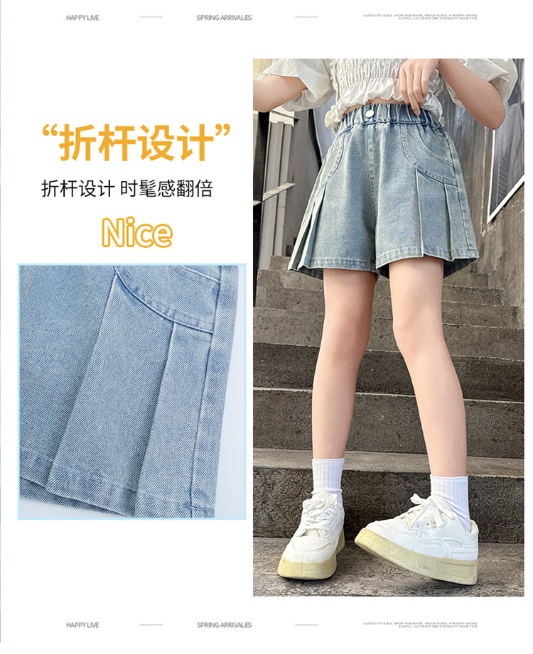 소녀 데님 반바지 2025 년 여름 새로운 도착 Zhongda 어린이 서양식 외부 얇은 핫 팬츠 소녀 올 매치 바지
