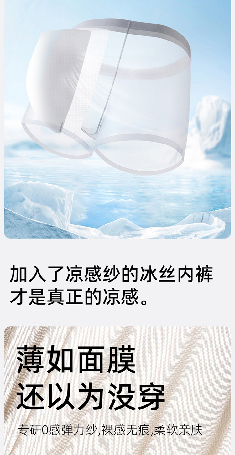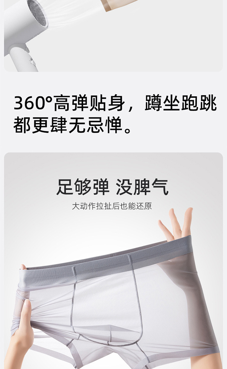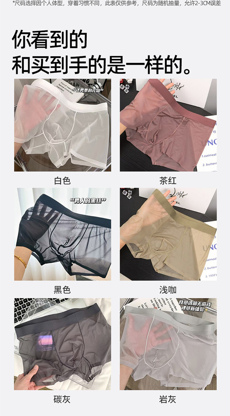 폭발성 남성용 아이스 실크 속옷 추적없는 투명 섹시 경량 통기성 투명 비감각 상자 여름 복서