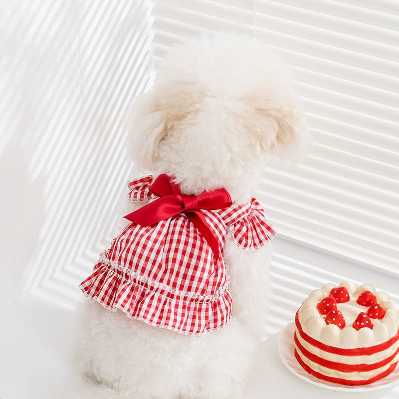 작은 개 레이스 스코틀랜드 공주 원피스 봄과 여름 얇은 치마 두 다리 스트랩 중소 개 애완 동물 옷스토어 가기