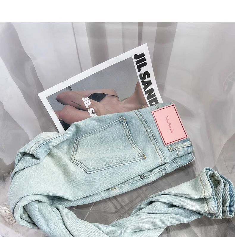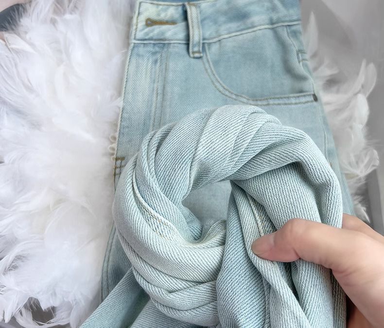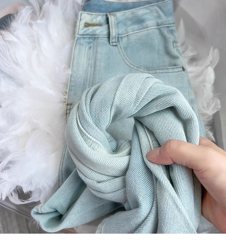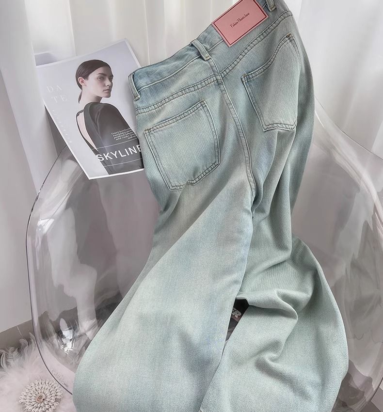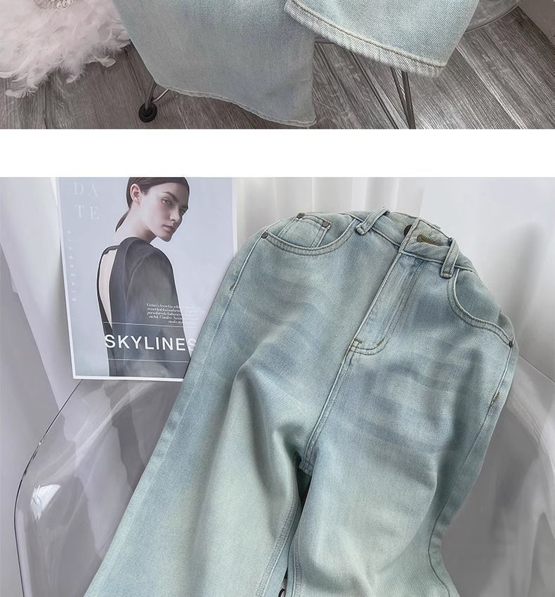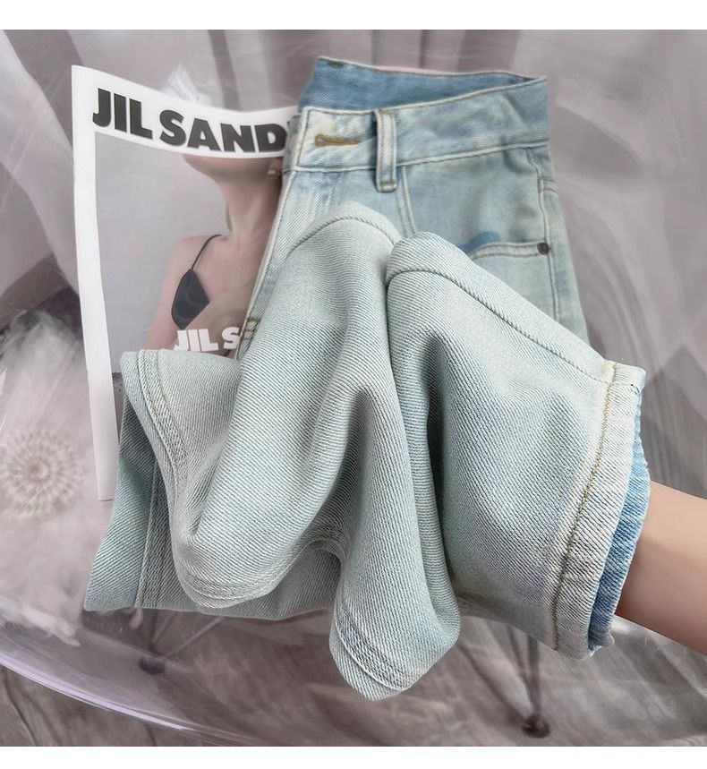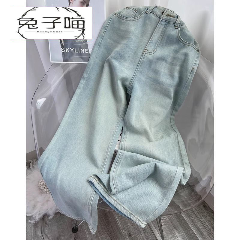 달빛 푸른 넓은 다리 청바지 여자 2025 봄 새로운 높은 허리 느슨한 올매치 딥 좁은 스트레이트 바지스토어 가기