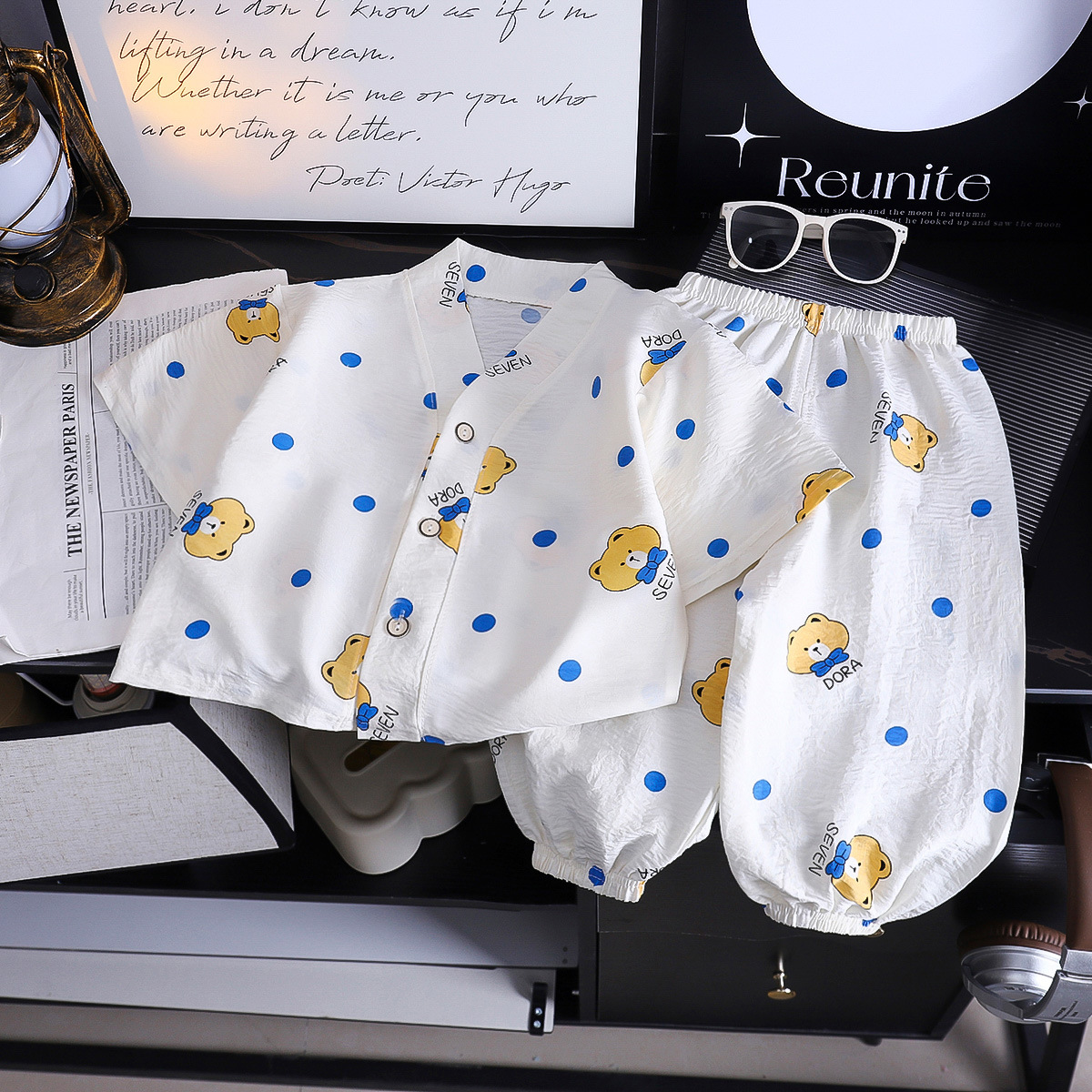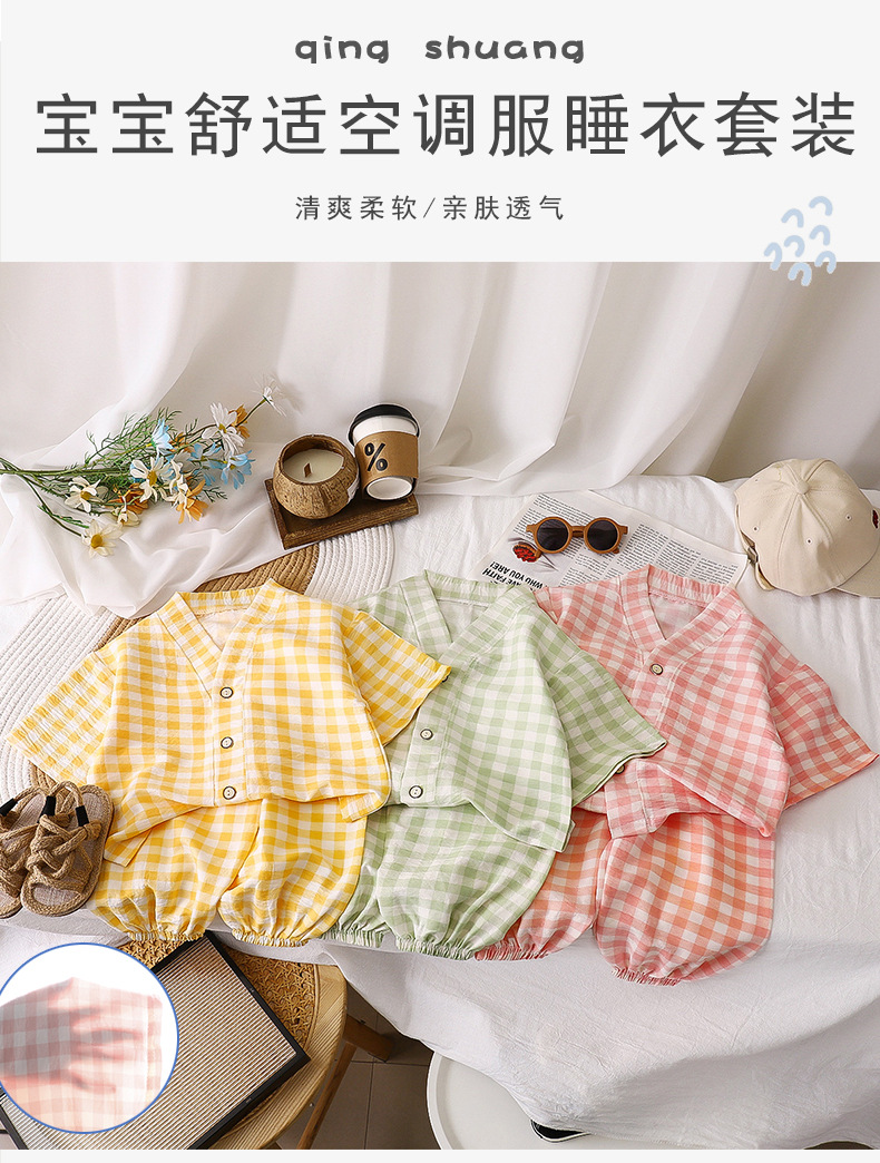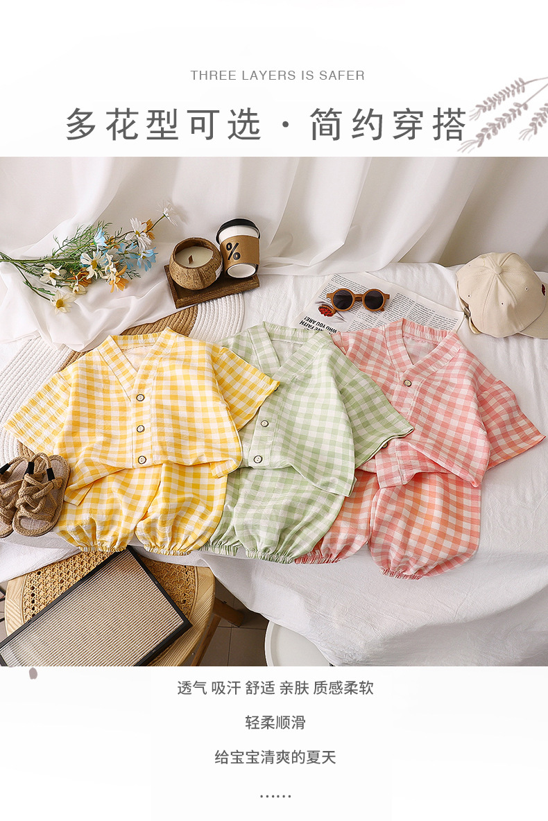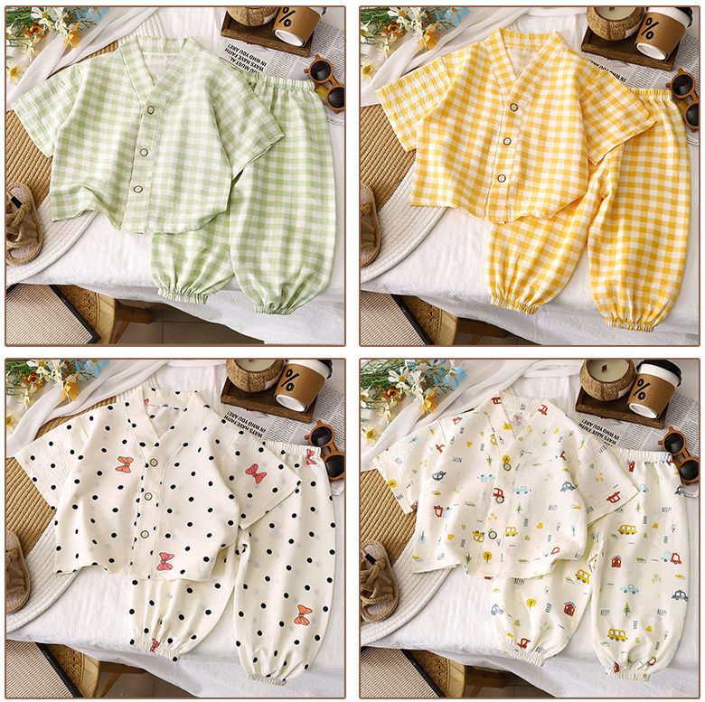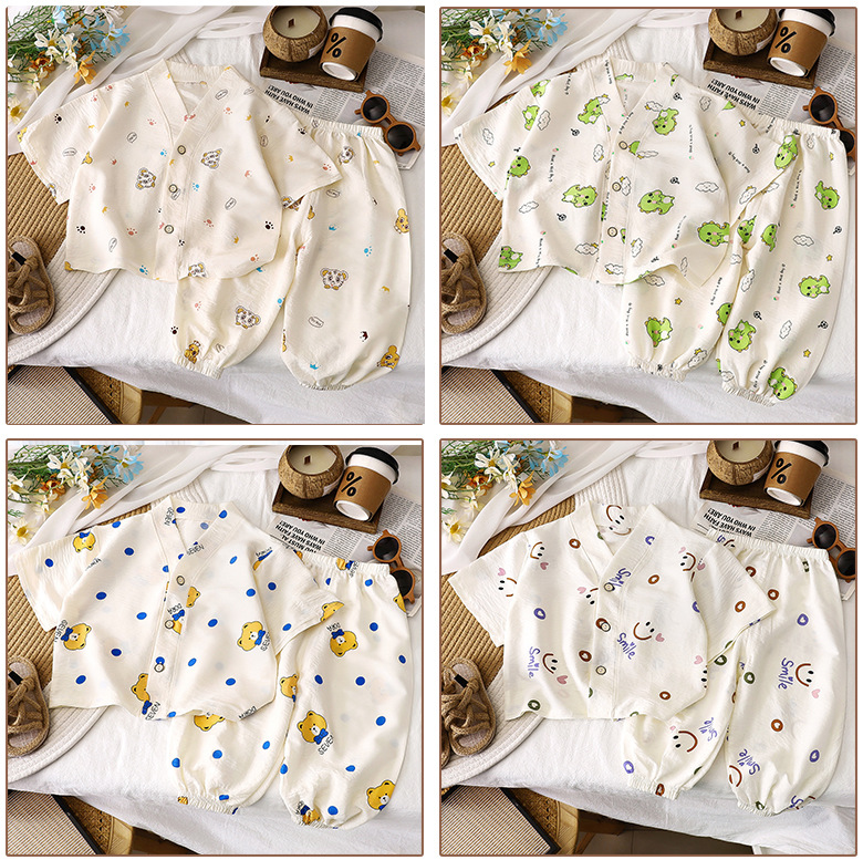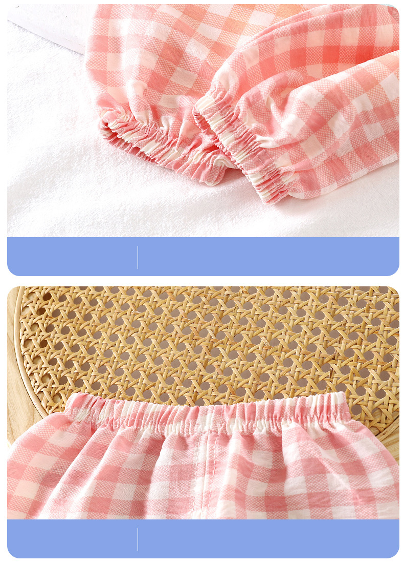 어린이 여름 홈 옷 소년 소녀를위한 아기 버블 파자마 소년 소녀를위한 홈 옷 아기와 소녀를위한 에어컨 옷 9 점 세트