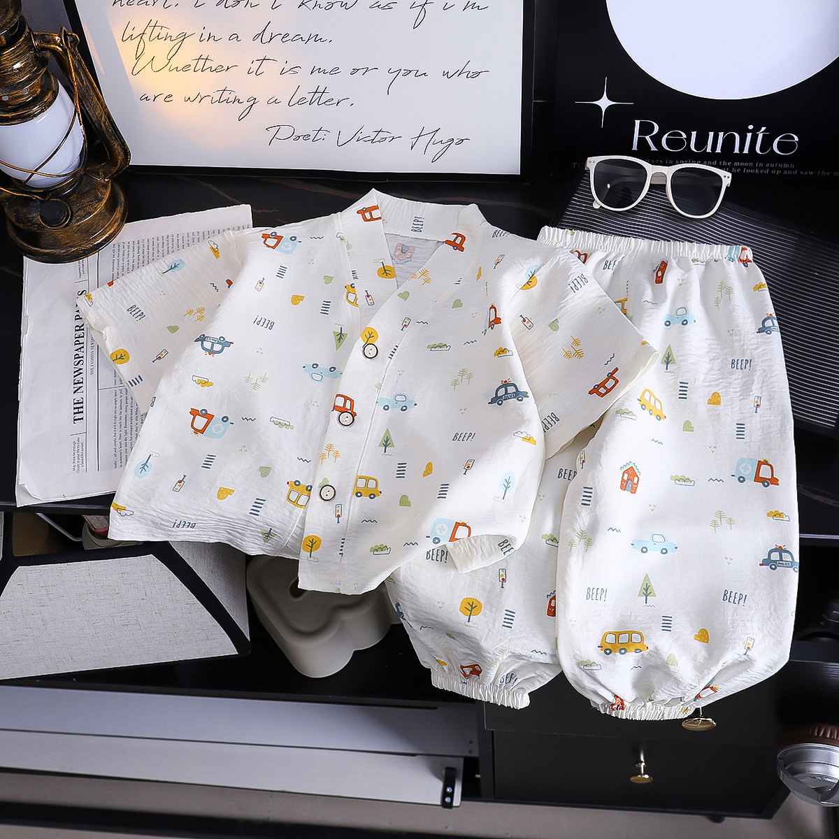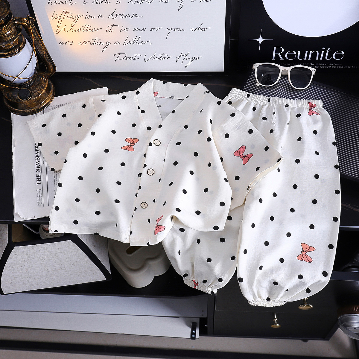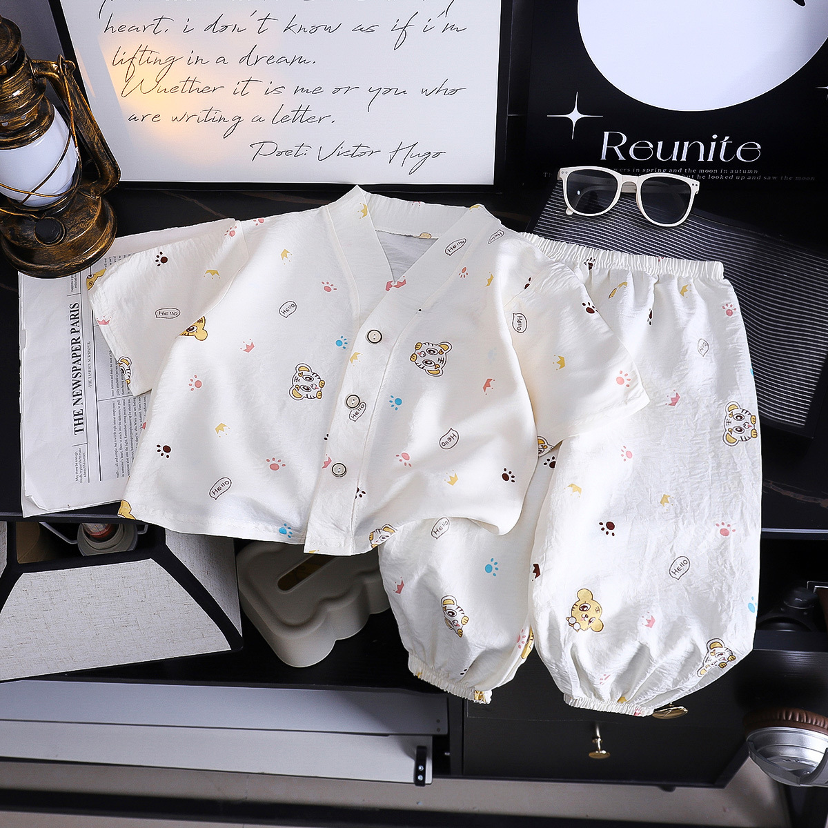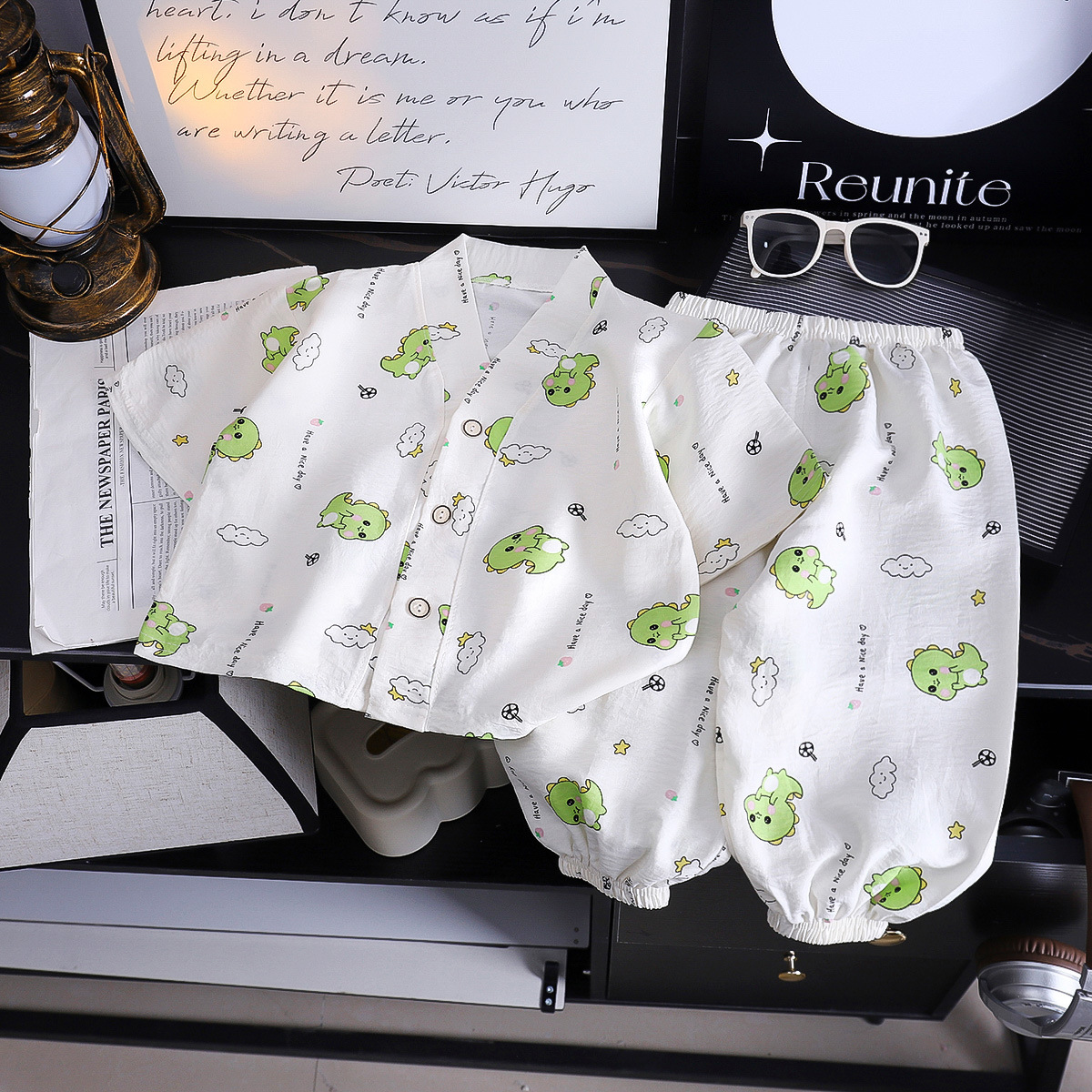 어린이 여름 홈 옷 소년 소녀를위한 아기 버블 파자마 소년 소녀를위한 홈 옷 아기와 소녀를위한 에어컨 옷 9 점 세트