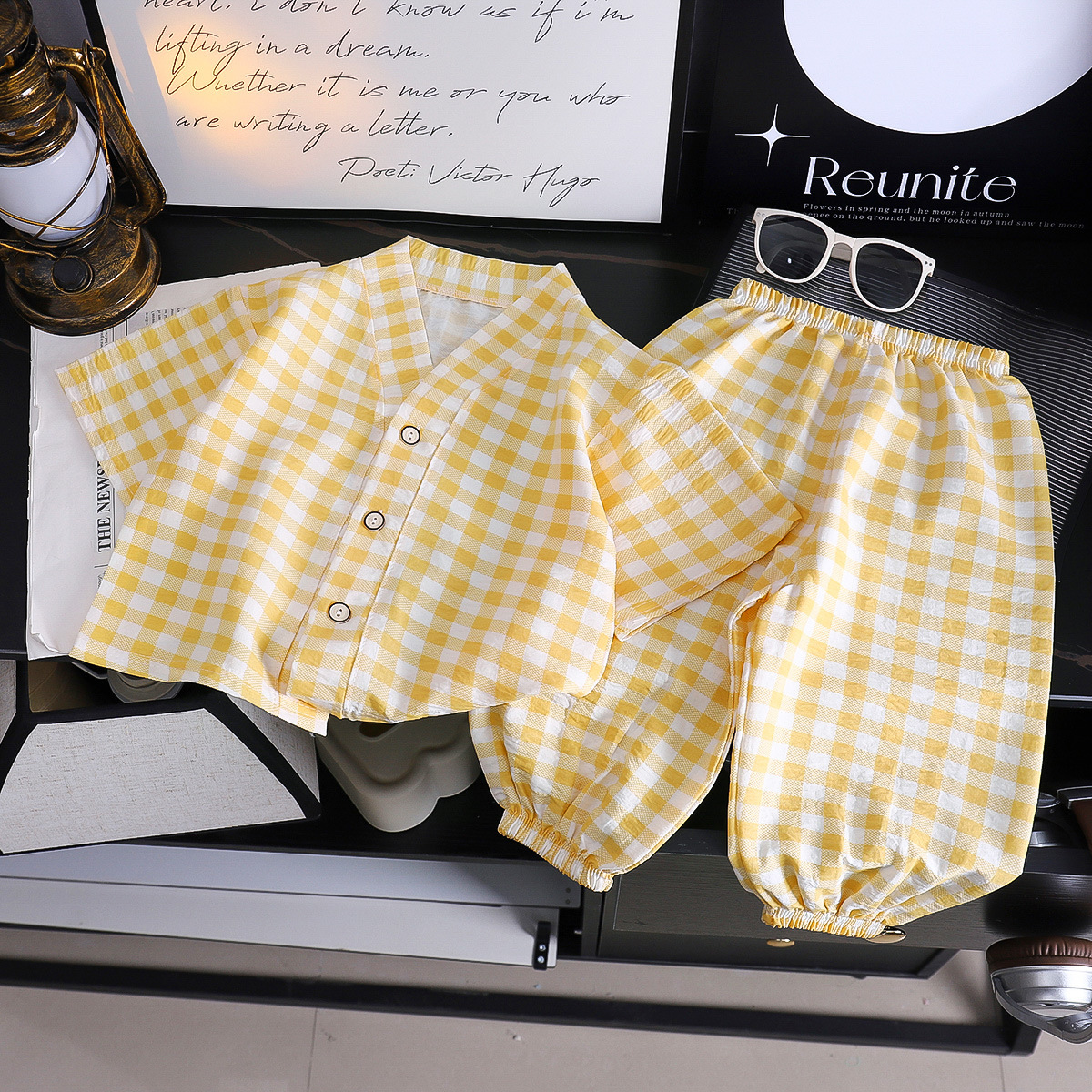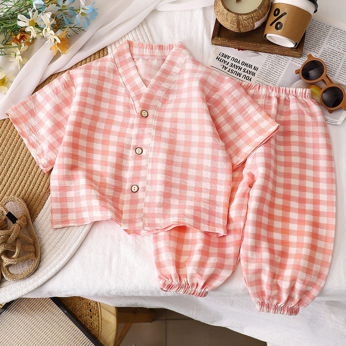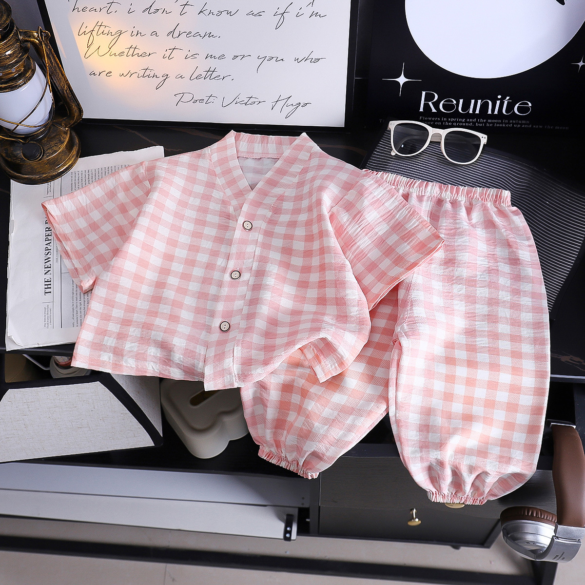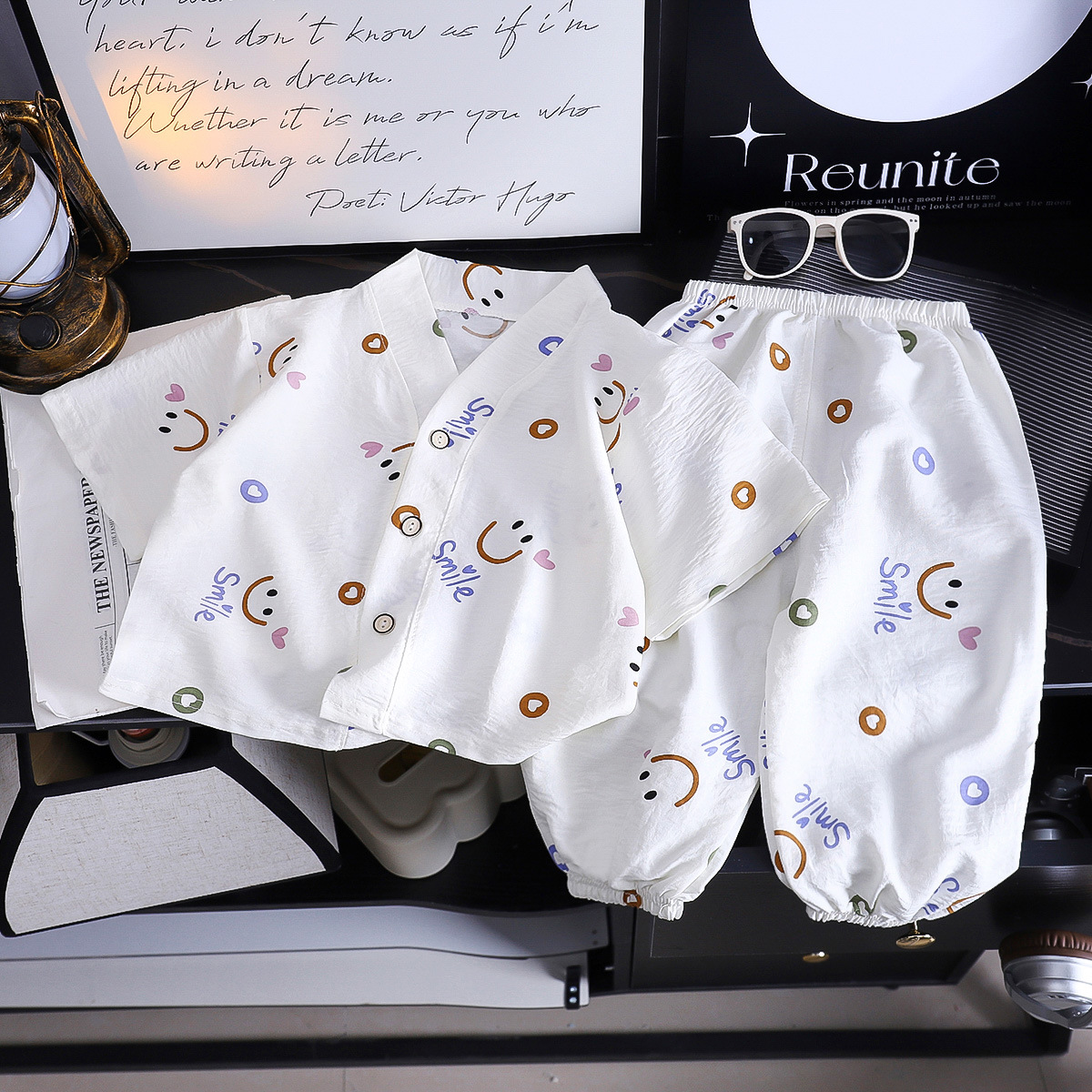 어린이 여름 홈 옷 소년 소녀를위한 아기 버블 파자마 소년 소녀를위한 홈 옷 아기와 소녀를위한 에어컨 옷 9 점 세트