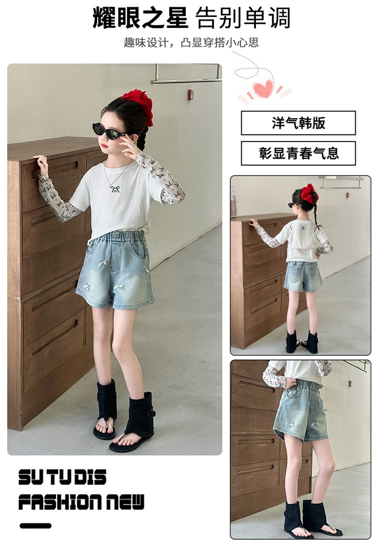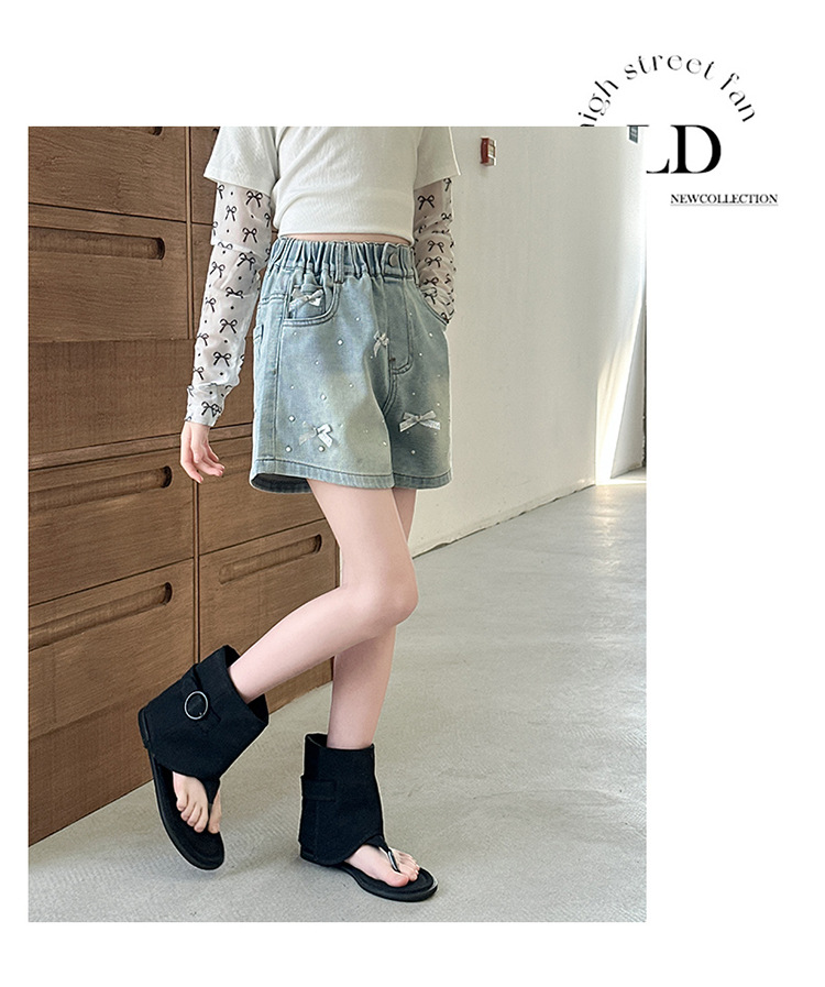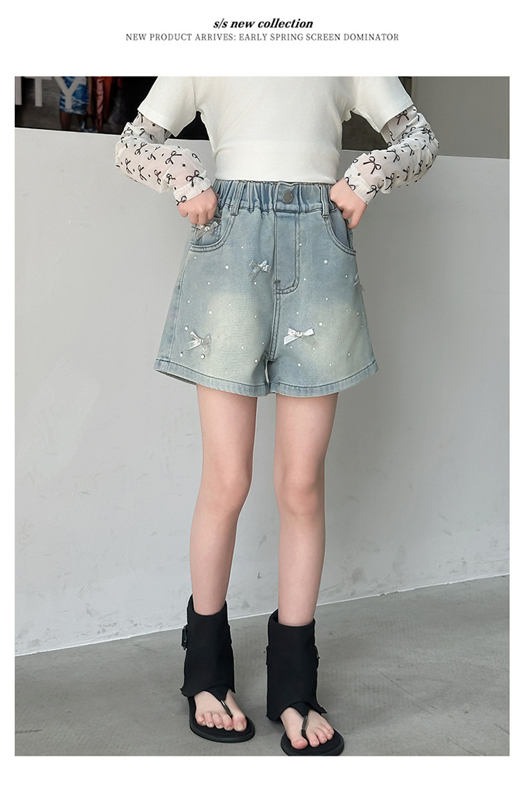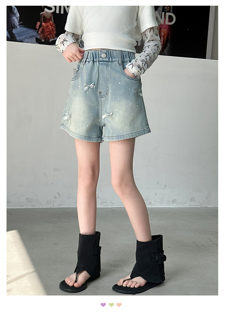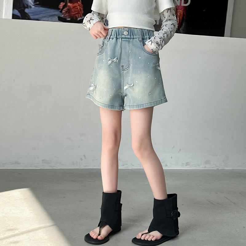 소녀 데님 반바지 2025 새로운 여름 얇은 외부 입고 여름 서양 스타일 여름 큰 어린이 활 유행 바지스토어 가기