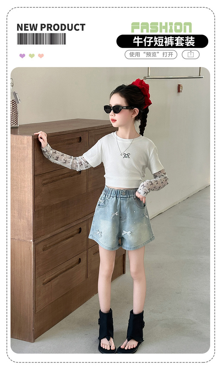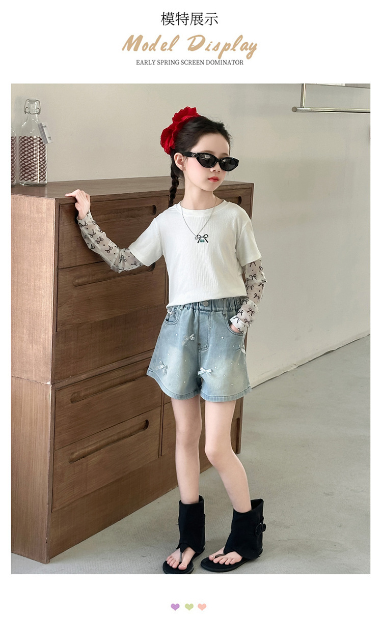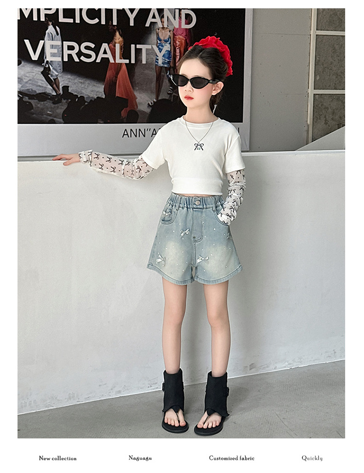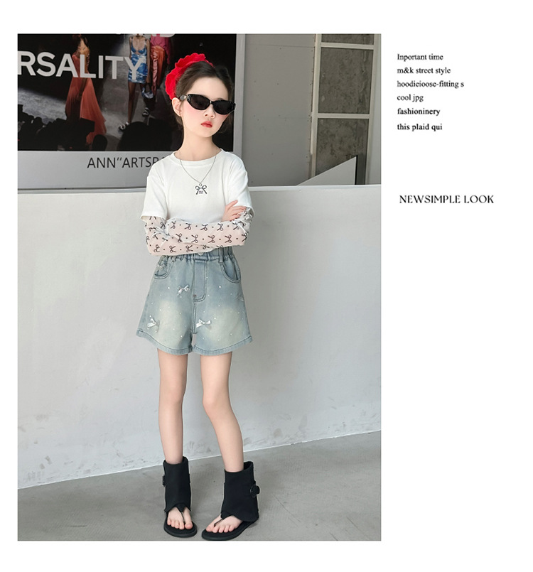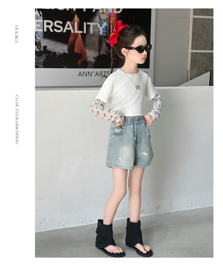 소녀 데님 반바지 2025 새로운 여름 얇은 외부 입고 여름 서양 스타일 여름 큰 어린이 활 유행 바지스토어 가기
