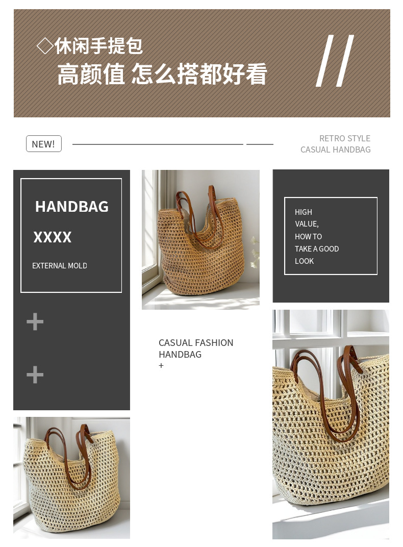 손으로 짠 코튼 백 대용량 비치 백 핸드백 캐주얼 할로우 숄더 백 여성용 Ins 스타일 모리 스타일 고대스토어 가기
