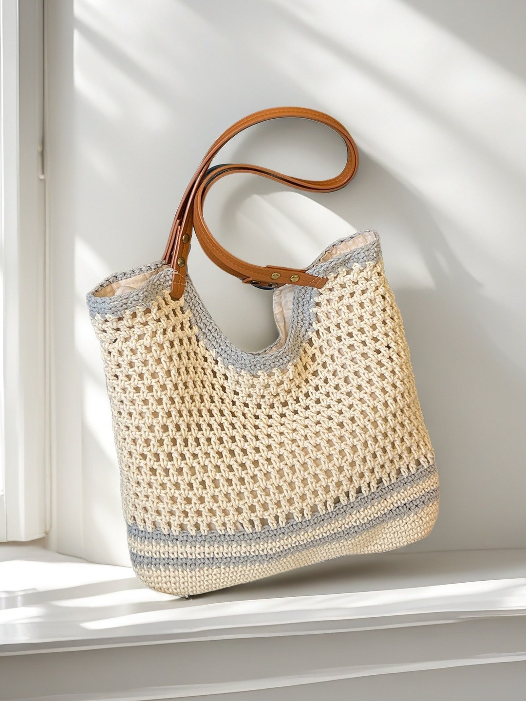 손으로 짠 코튼 백 대용량 비치 백 핸드백 캐주얼 할로우 숄더 백 여성용 Ins 스타일 모리 스타일 고대