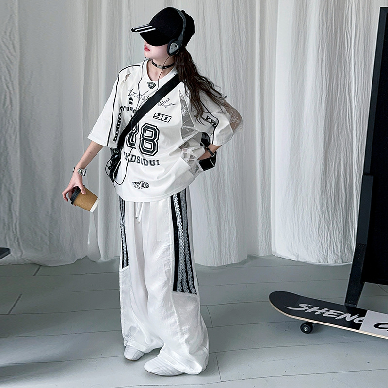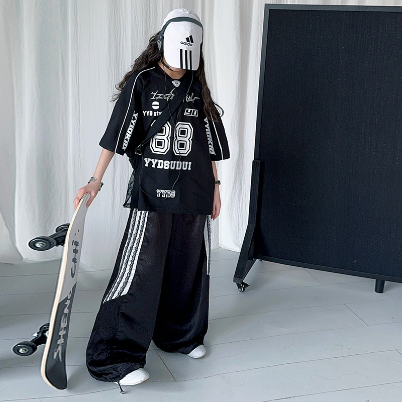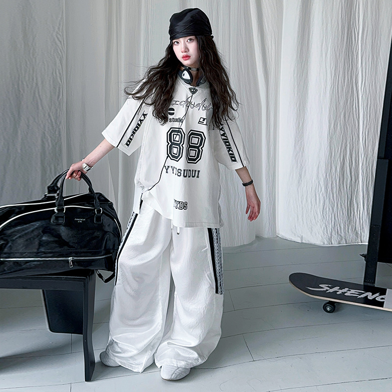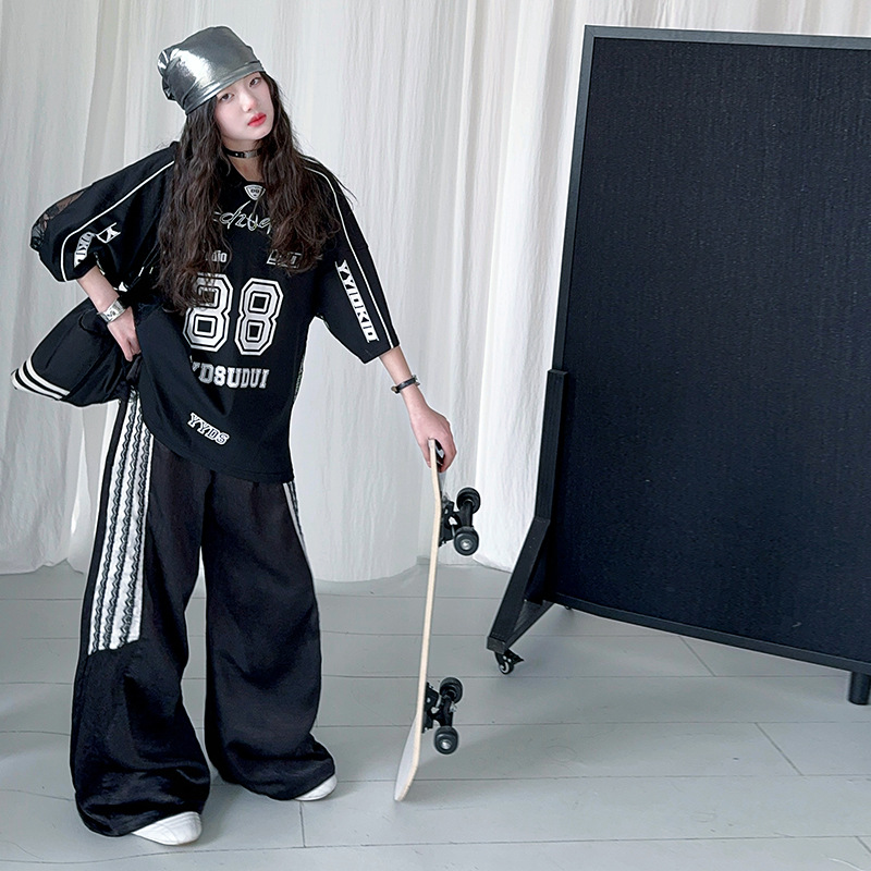 여자 힙합 패션 힙합 세트 2025 여름 옷 새로운 Hiphop 큰 어린이 드럼 어린이 어린이 드럼 의상