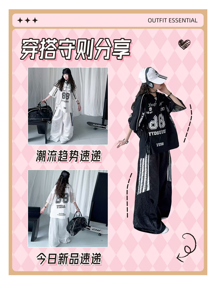 여자 힙합 패션 힙합 세트 2025 여름 옷 새로운 Hiphop 큰 어린이 드럼 어린이 어린이 드럼 의상스토어 가기