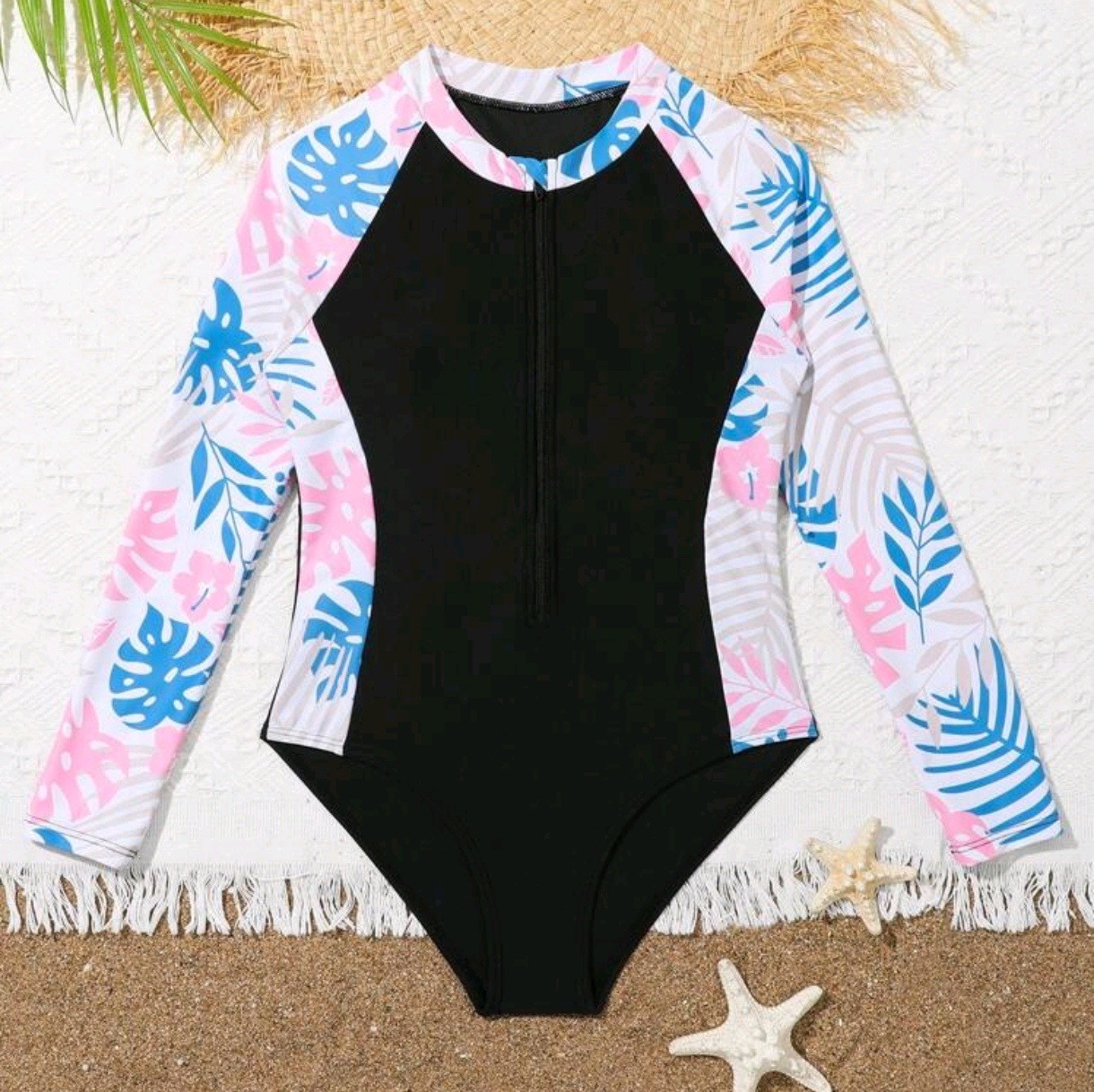 2025 새로운 Amazon 유럽과 미국의 섹시한 프린트 긴팔 중대형 소녀 원피스 비키니 수영복 제조 업체 도매스토어 가기
