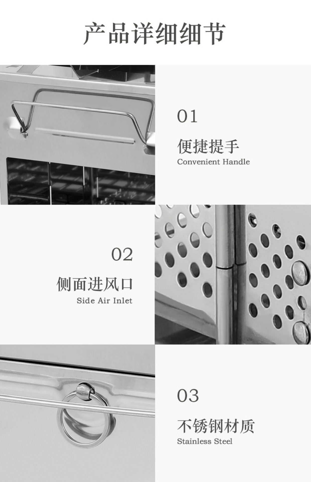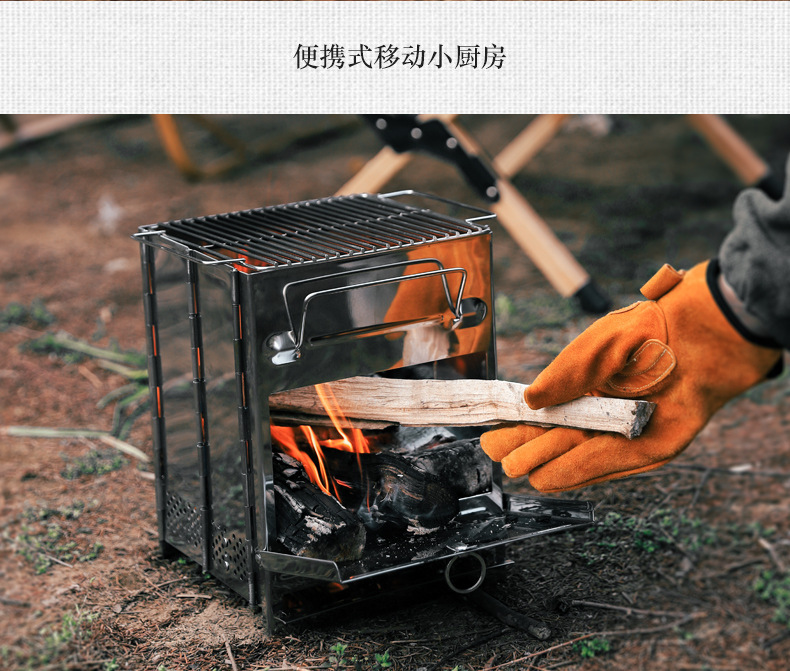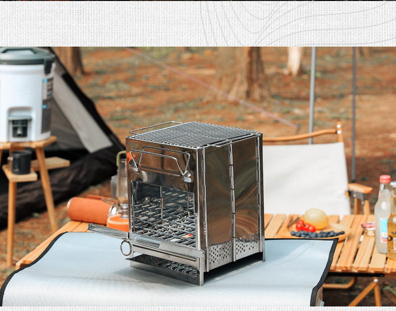 두꺼운 스테인레스 스틸 바베큐 그릴 야외 접이식 화덕 BBQ 장작 스토브 캠핑 난방 스토브 숯불 바베큐 스토브 w