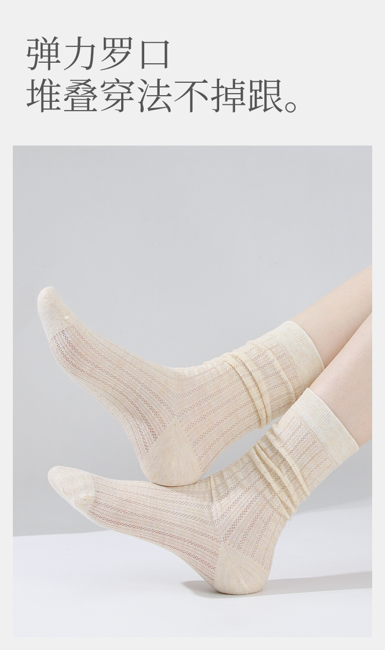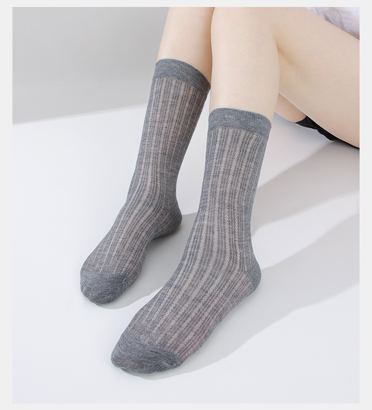 양말 여름 얇은 여성 스태킹 양말 양모 양말 여름 얇은 통기성 일정한 온도 중간 튜브 양말 양모 양말