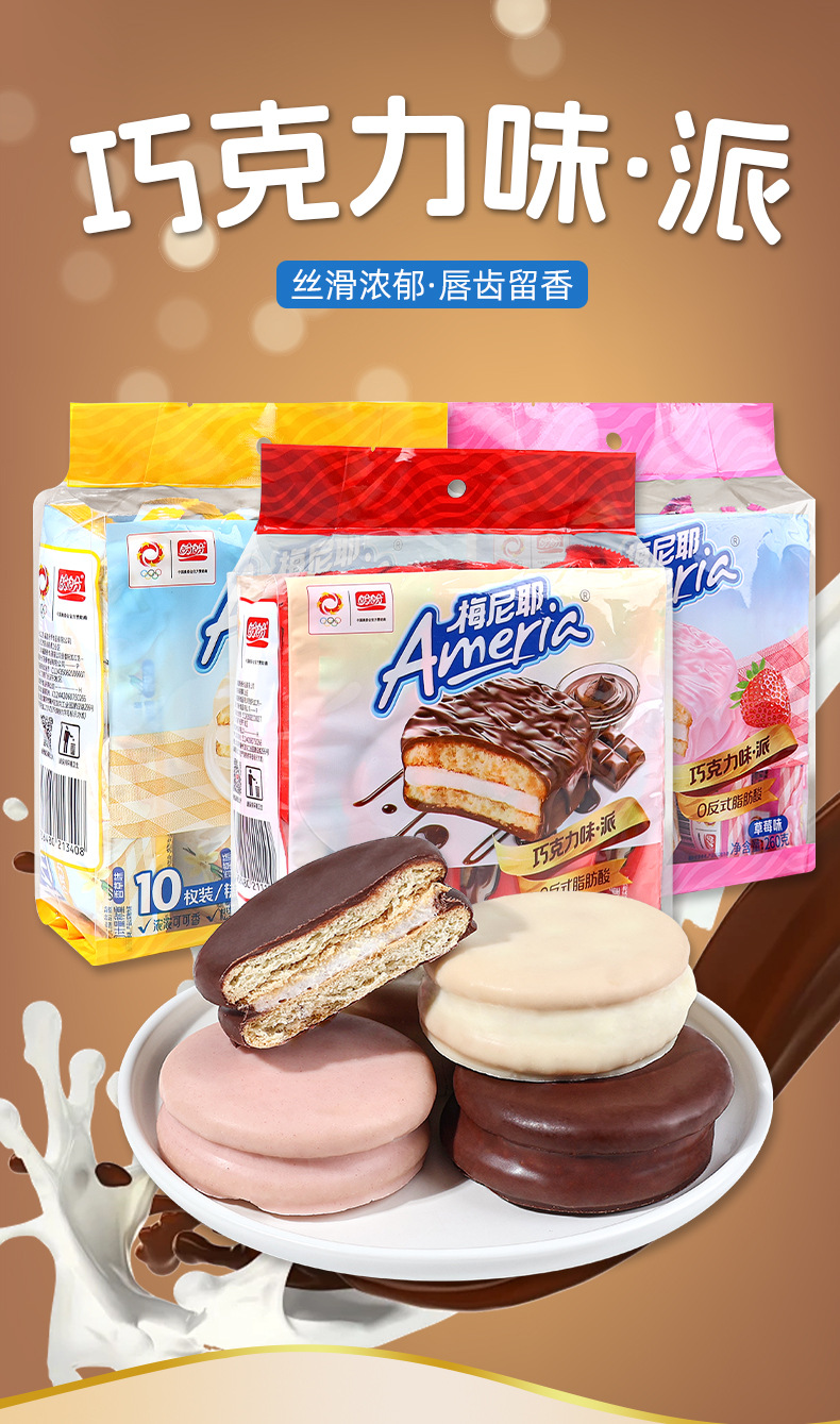 판판 메니에 초콜릿맛 파이 작은 포장 아침 식사 빵 샌드위치 케이크 오후 간식 배고픔을 달래주는 간식