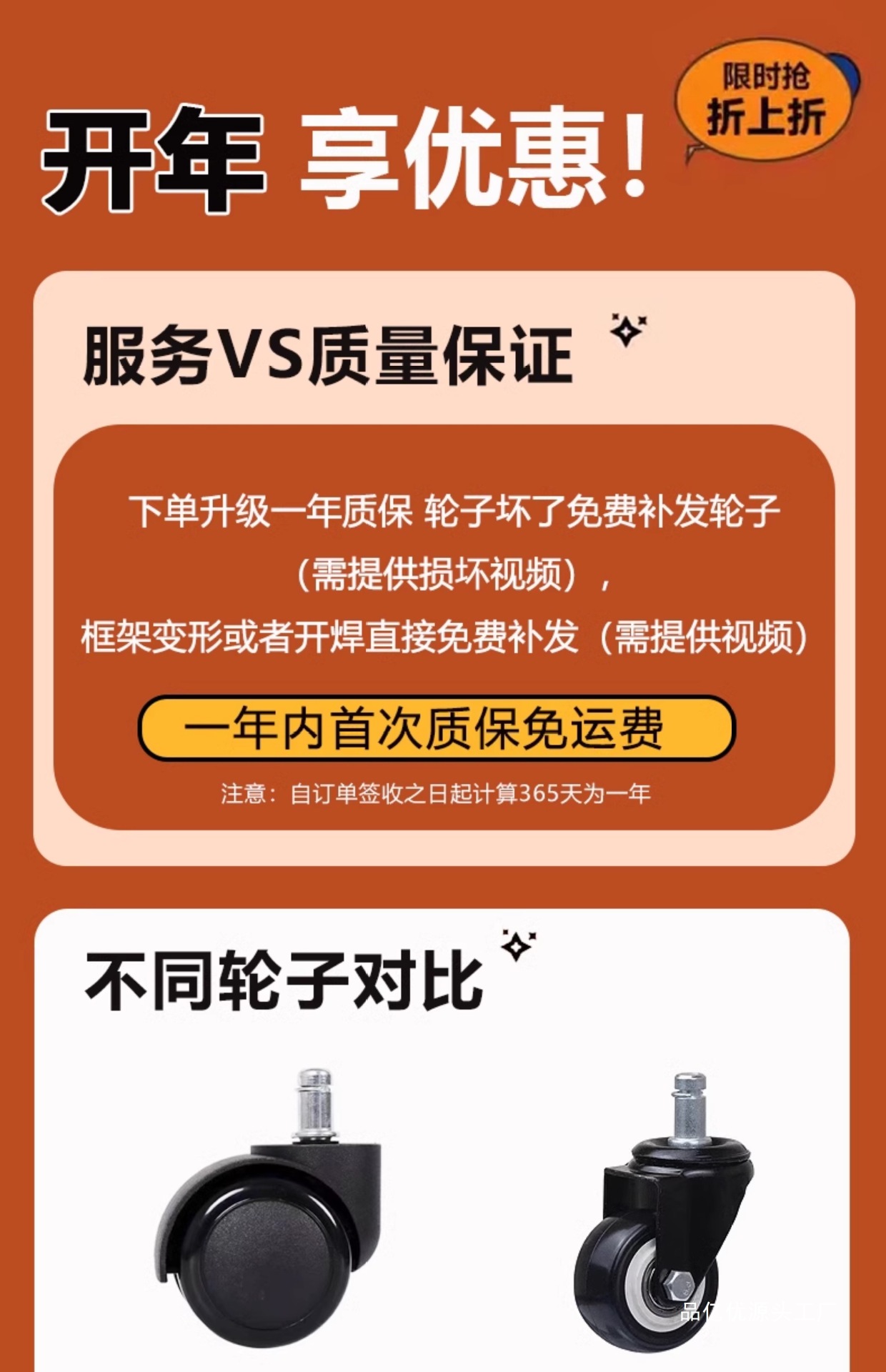 • [등받이가 있는 새로운 높이 모델] 두꺼워진 녹 방지 다리 + 저소음 베어링 휠 + 오렌지