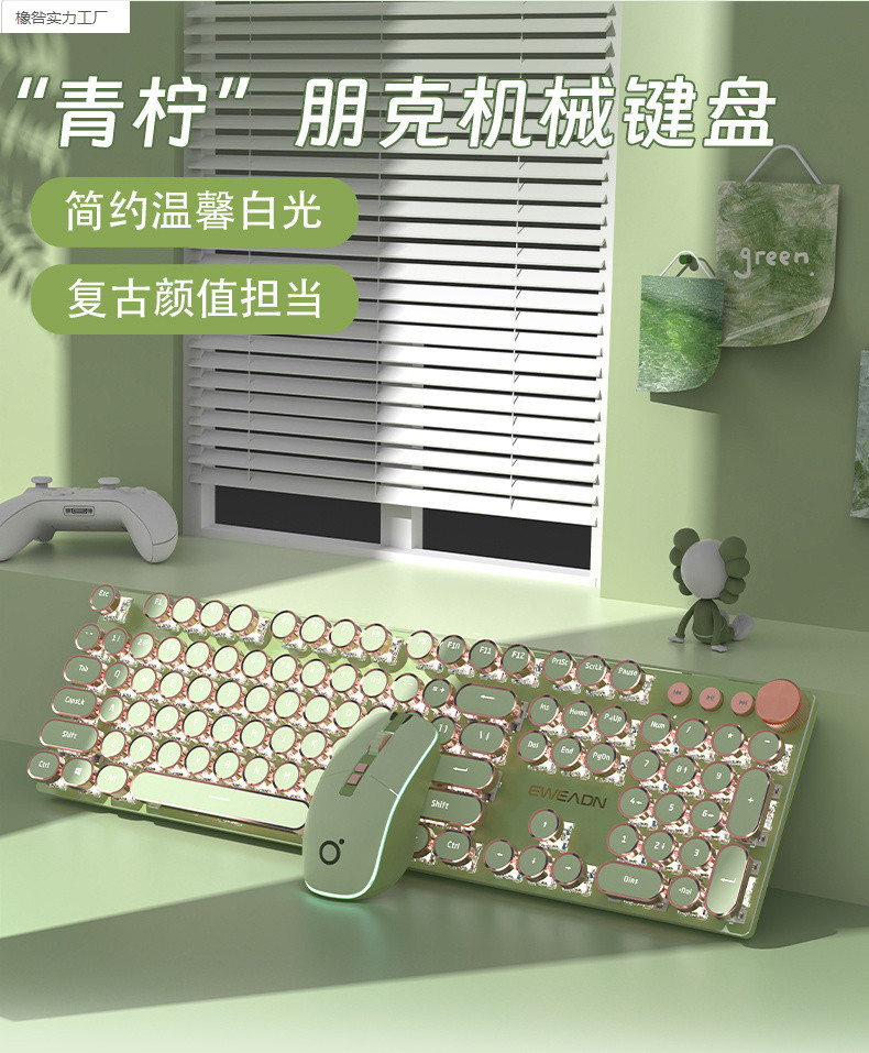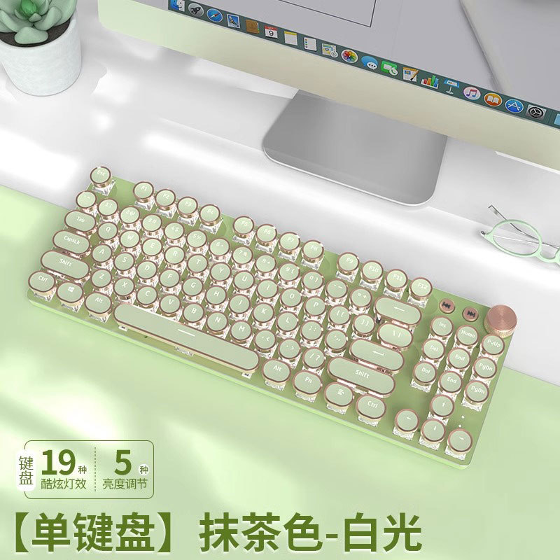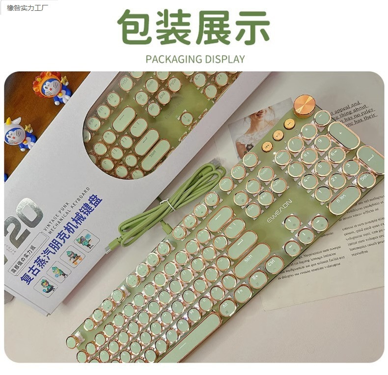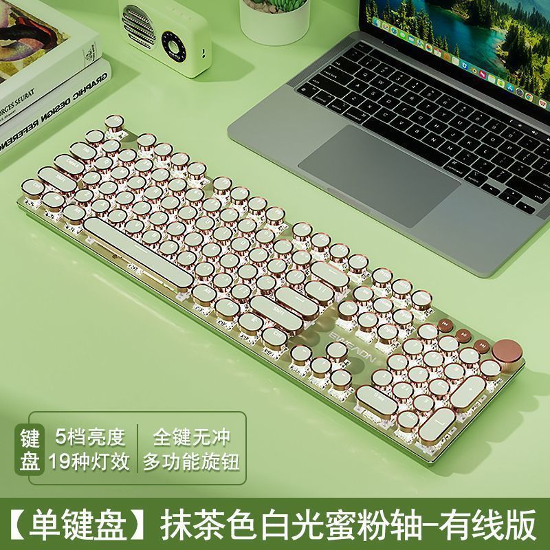 V20 Steampunk 기계식 키보드 세트 유선 컴퓨터 소녀 사무실 게임 무선 고가치스토어 가기