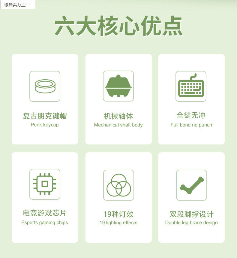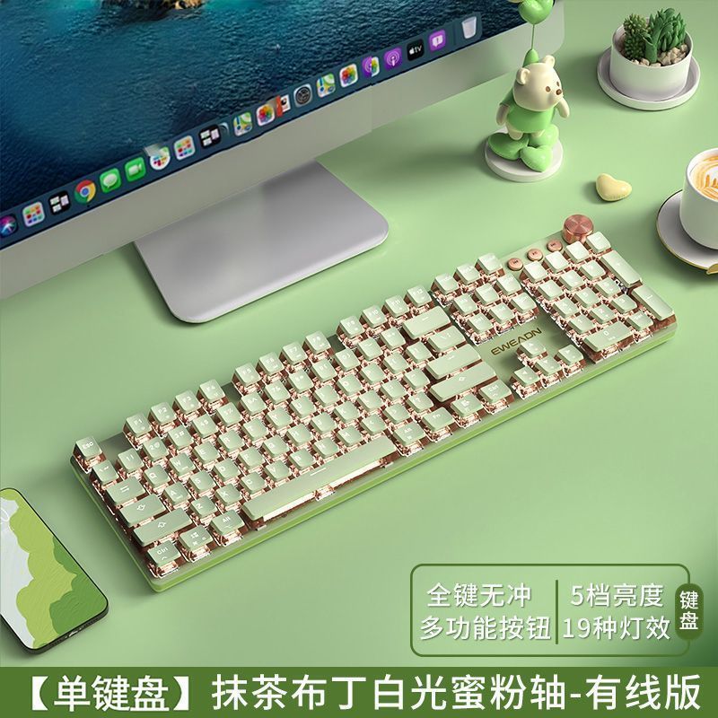 • 파우더 샤프트 [가벼운 느낌 - 편안한 마작 소리] - 말차 색상 - 백색광 유선 모델 - 87 키 + 무음 마우스