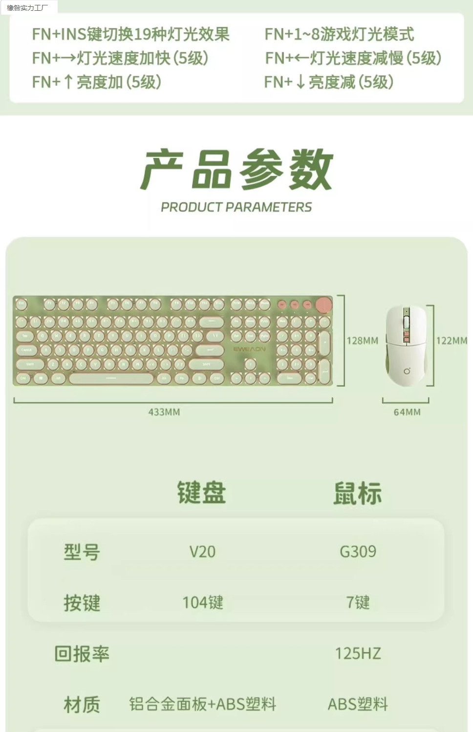 • 파우더 샤프트 [가벼운 느낌 - 편안한 마작 소리] - [키보드 및 마우스 세트] 말차 색상 - 흰색 조명 무선 3모드 모델 - 104 키