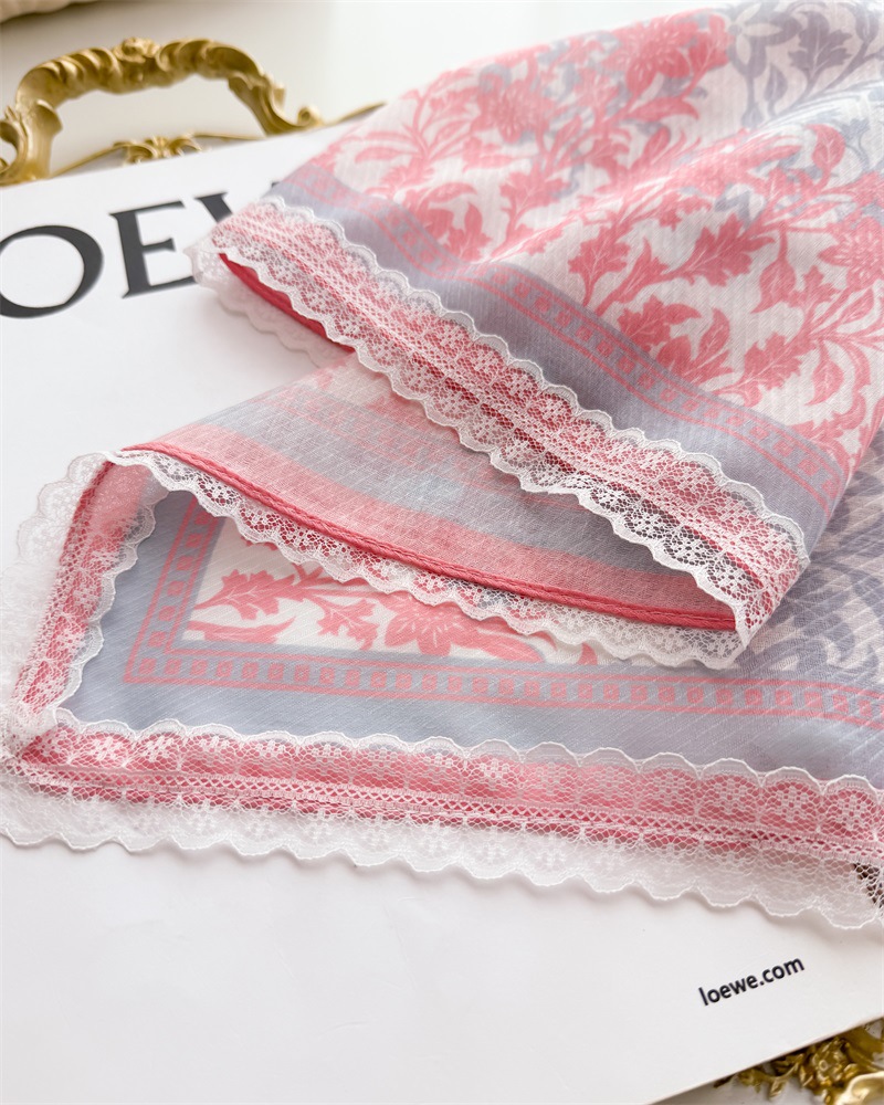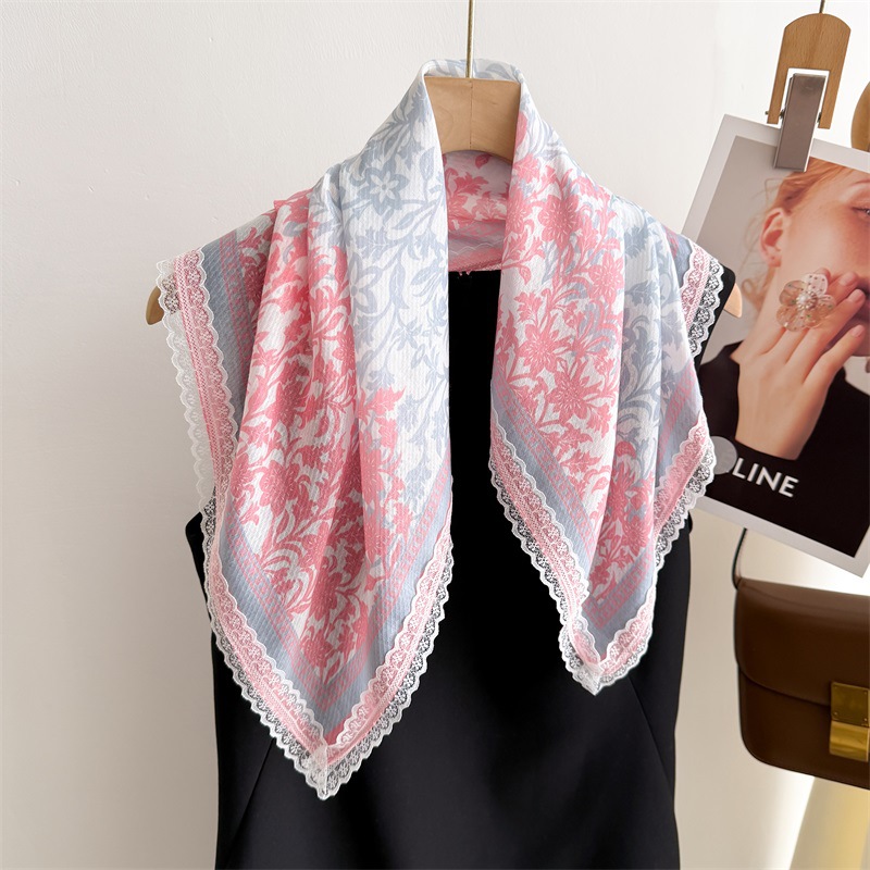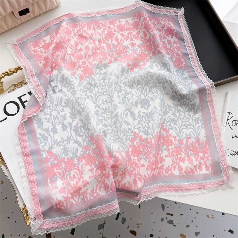 봄과 가을 새로운 한국 스타일 레이스 가장자리 작은 광장 스카프 여성의 인쇄 실크 스카프 헤드 스카프 장식 올 매치 작은 스카프