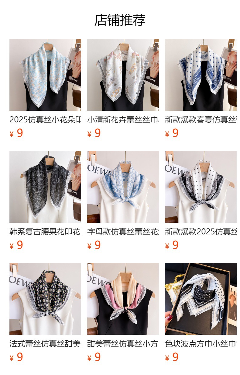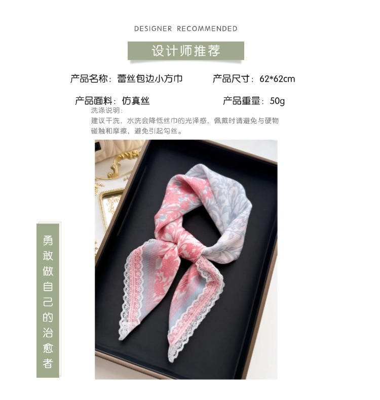 봄과 가을 새로운 한국 스타일 레이스 가장자리 작은 광장 스카프 여성의 인쇄 실크 스카프 헤드 스카프 장식 올 매치 작은 스카프스토어 가기