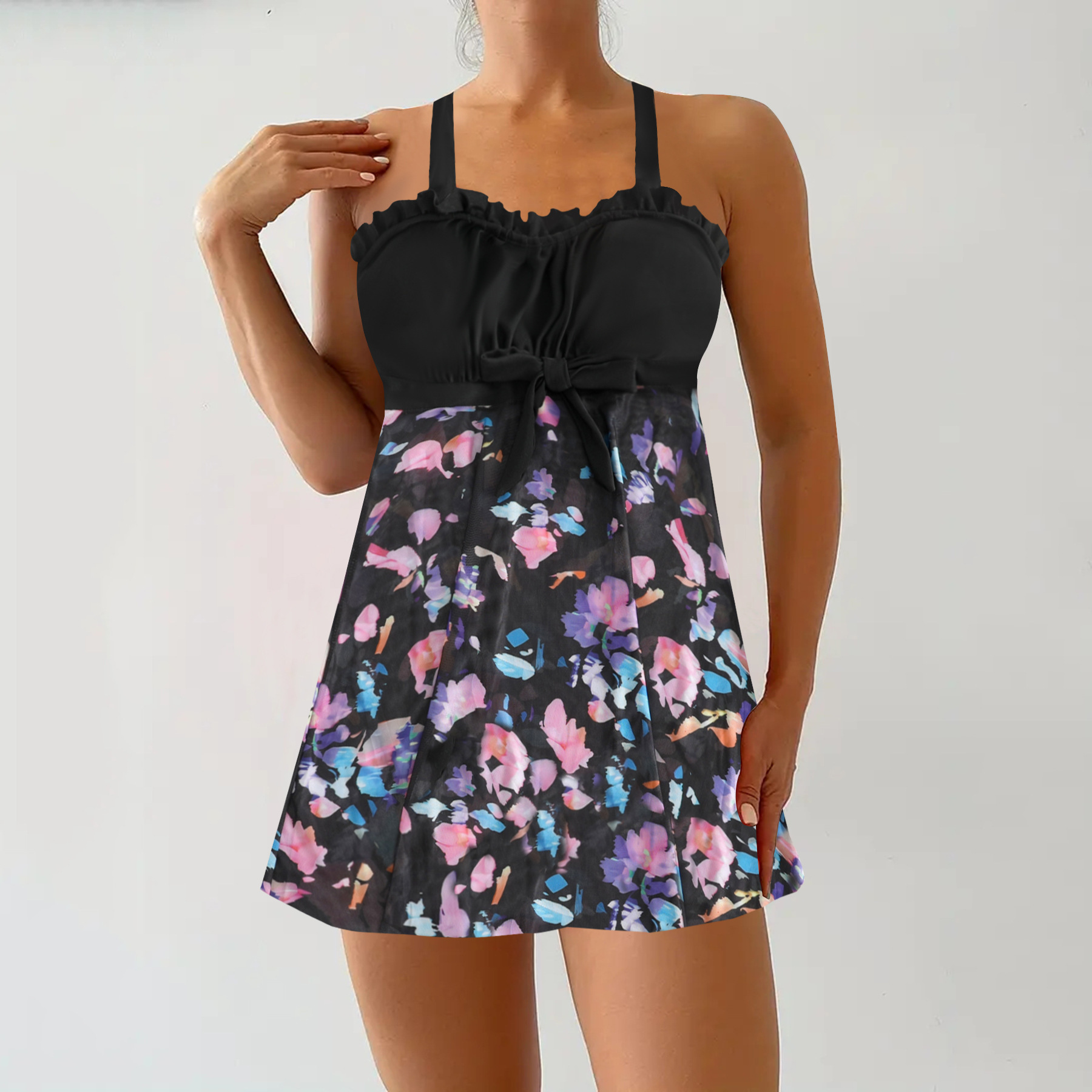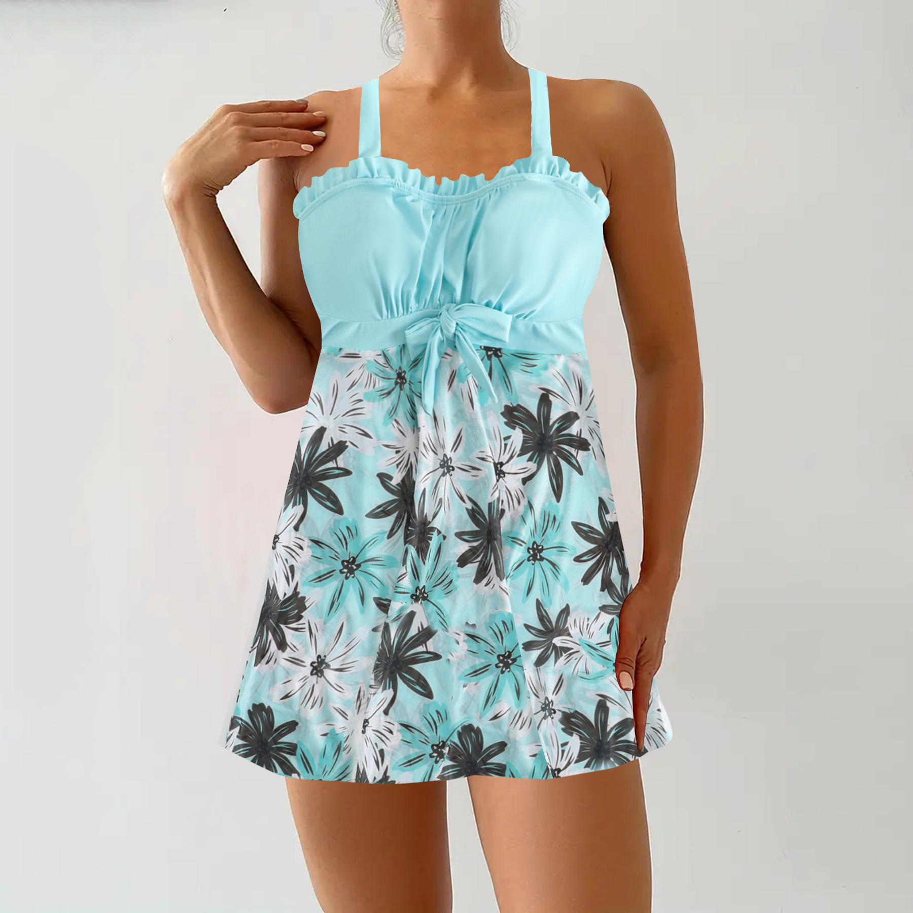 2025 새로운 백리스 스플릿 수영복 여성 프린트 탱키니 보수적 인 해변 수영복