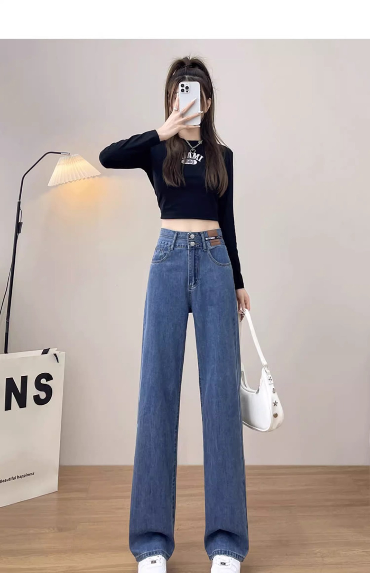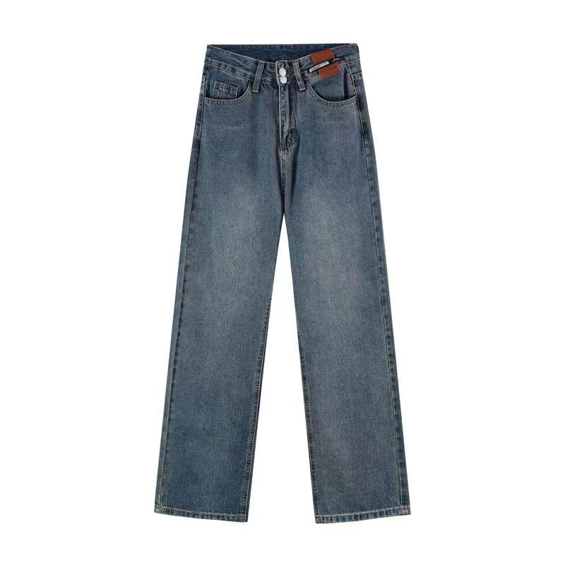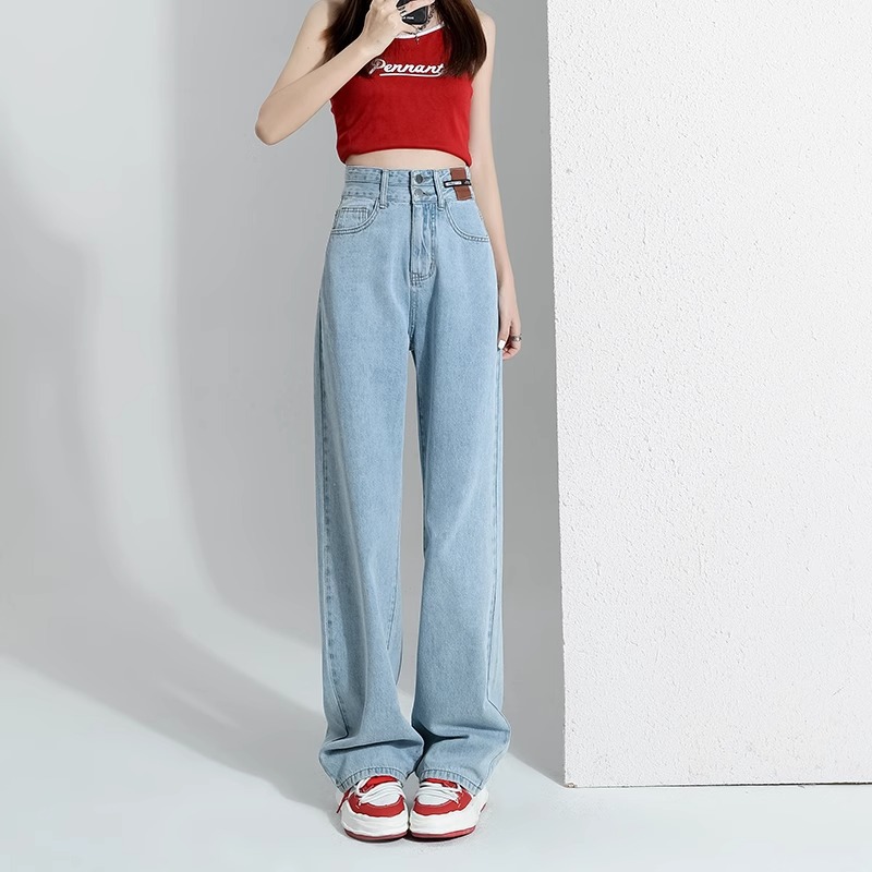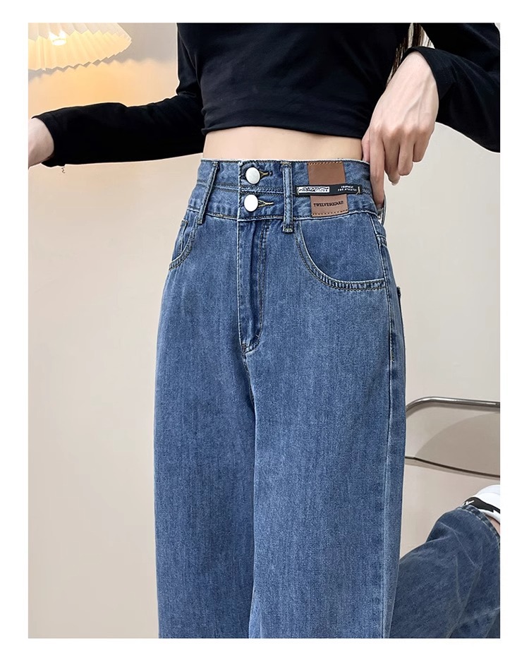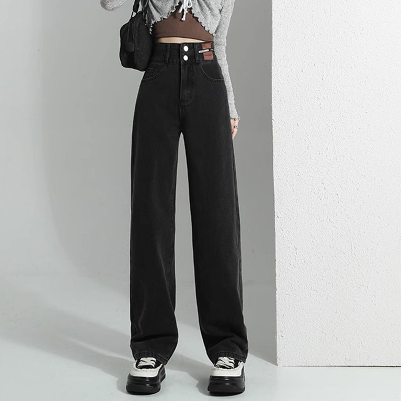 높은 허리 좁은 넓은 다리 청바지 여성의 2025 봄 새 플러스 사이즈 통통녀 슬리밍 느슨한 직선 바지스토어 가기