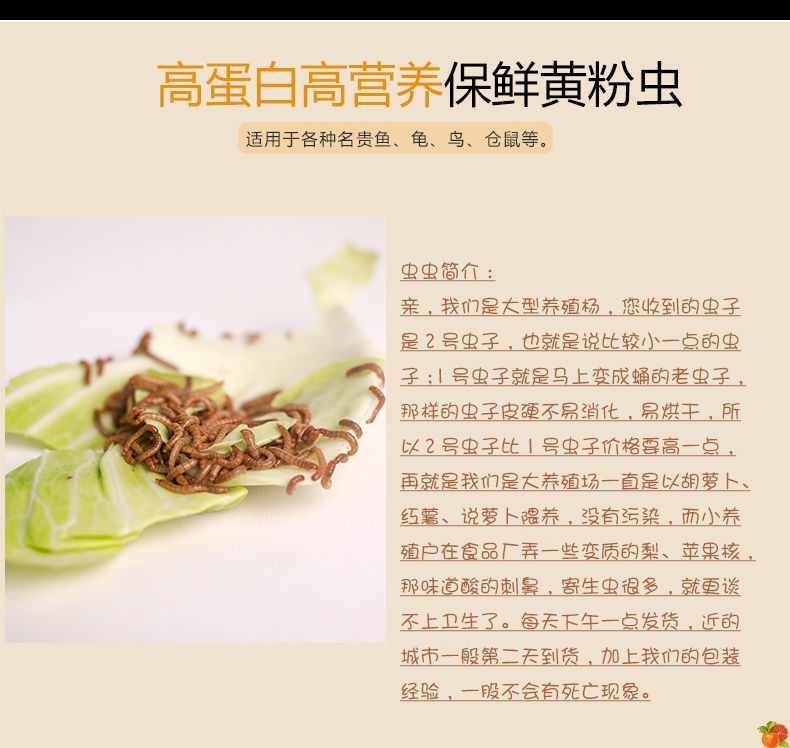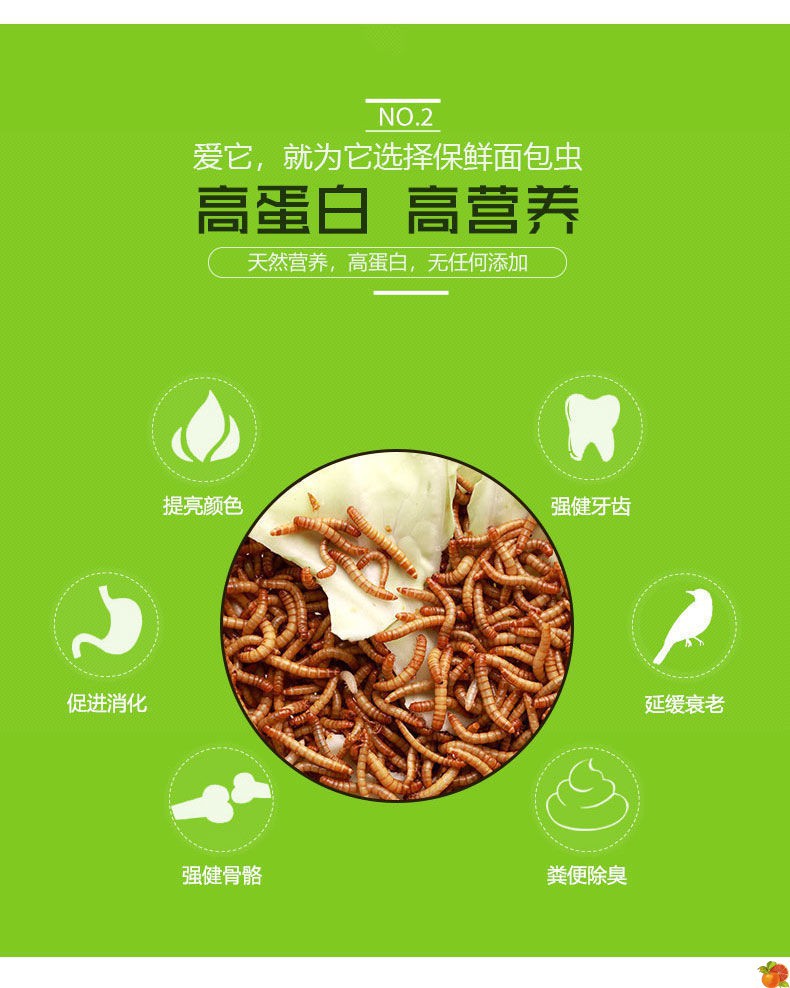 • 1.5cm 애벌레 0.5파운드에는 밀기울 0.5파운드가 포함되어 있습니다.