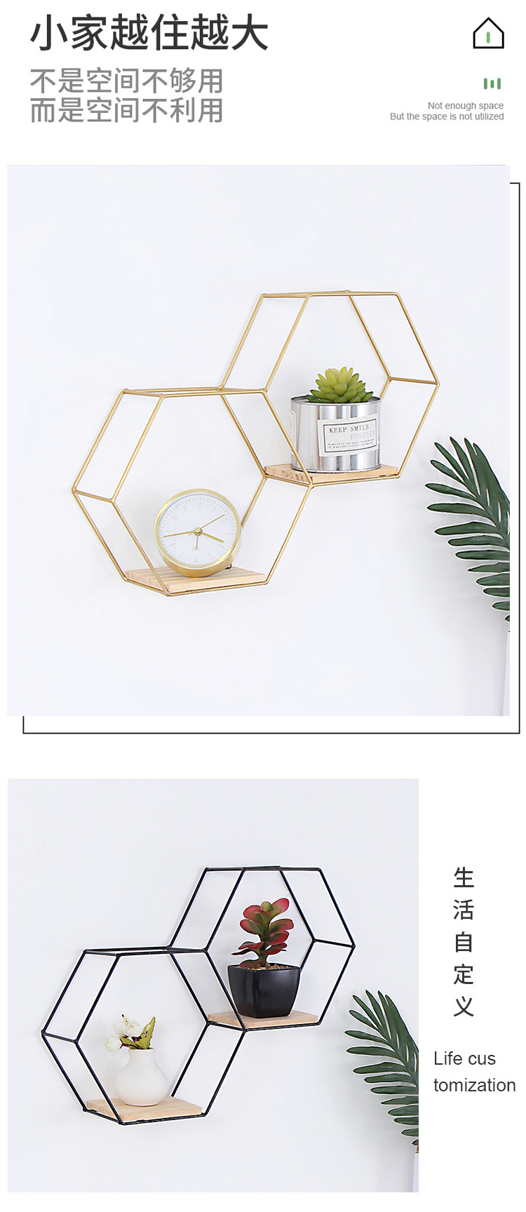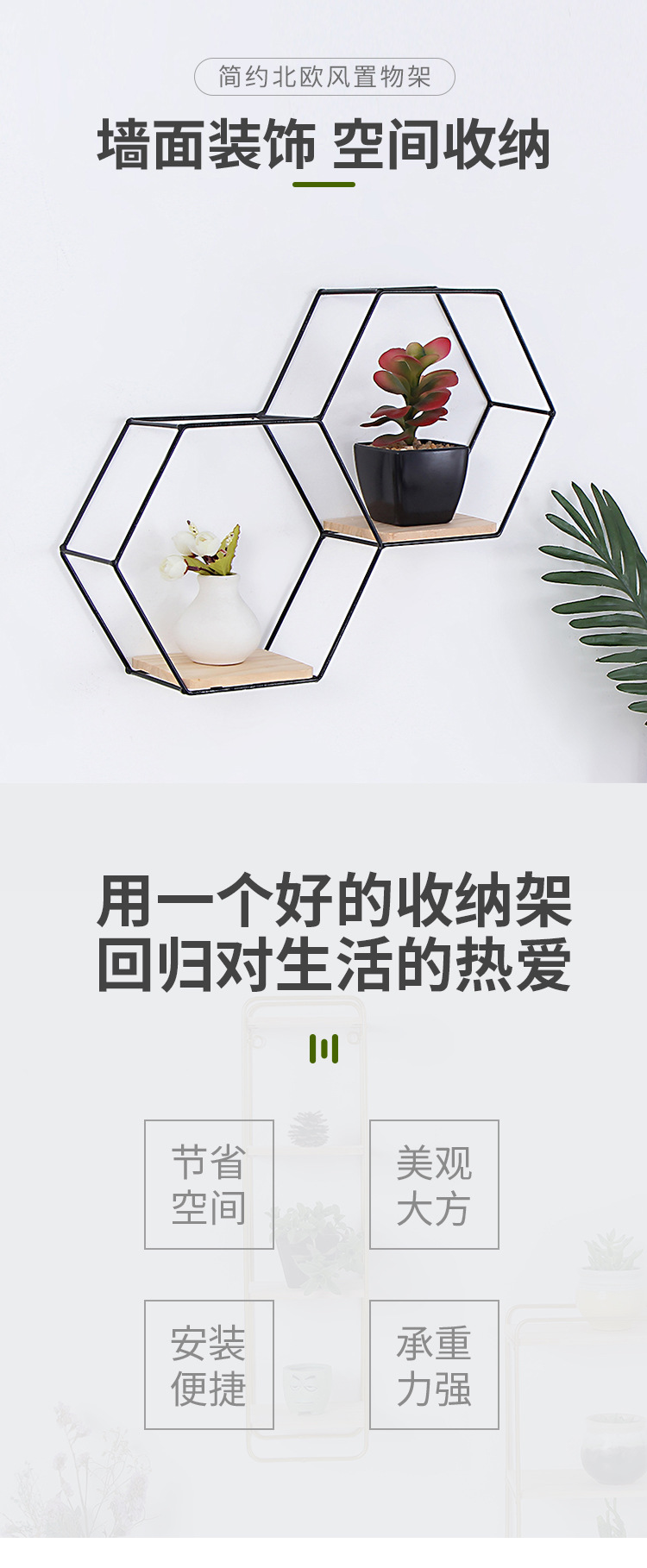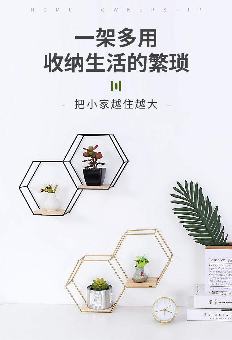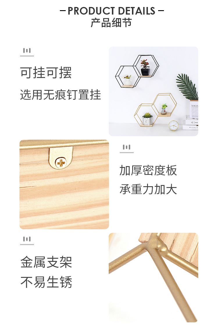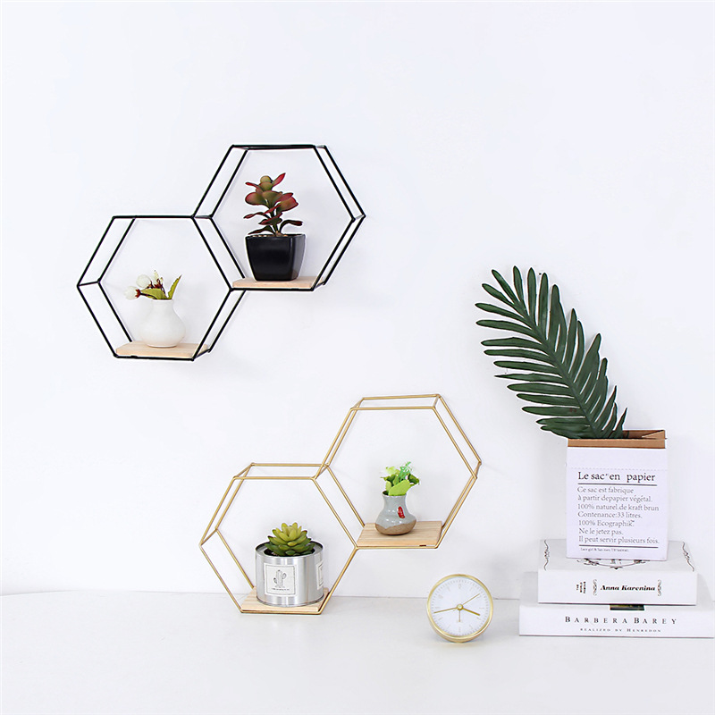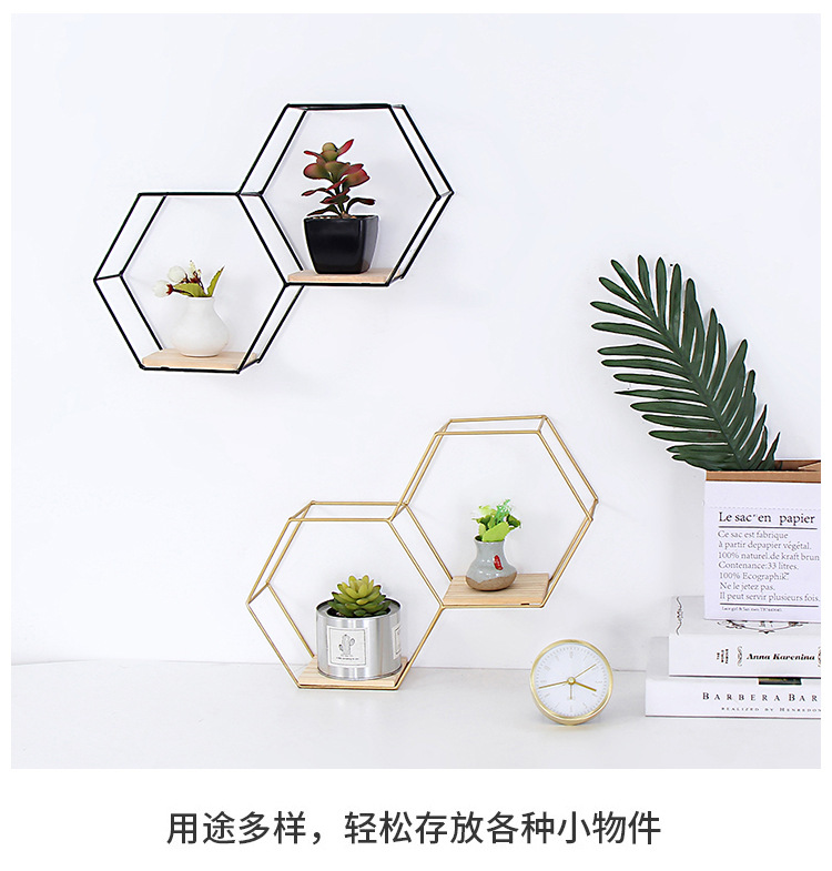 공장 직접 판매 맞춤형 대각선 육각형 철 벽걸이 잔해물 보관함 거실 침실 나무 벽 장식스토어 가기