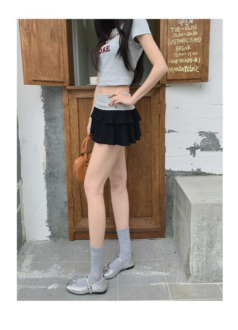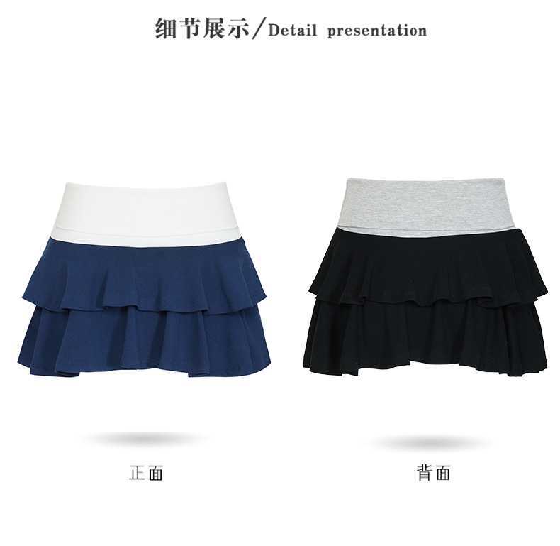 도매 드롭 배송 여름 미국 복고풍 하이 웨이스트 대비 색상 블루 달콤한 핫 소녀 하프 길이 주름 짧은 스커트
