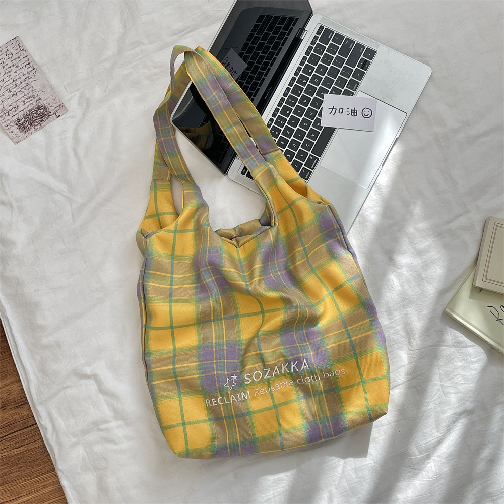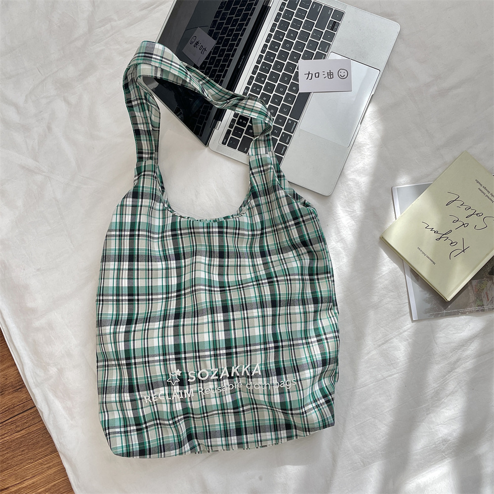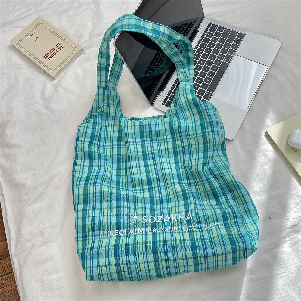 53162 새로운 대용량 단순 자수 어깨 격자 가방 경량 통근 캔버스 가방 베젤 가방스토어 가기