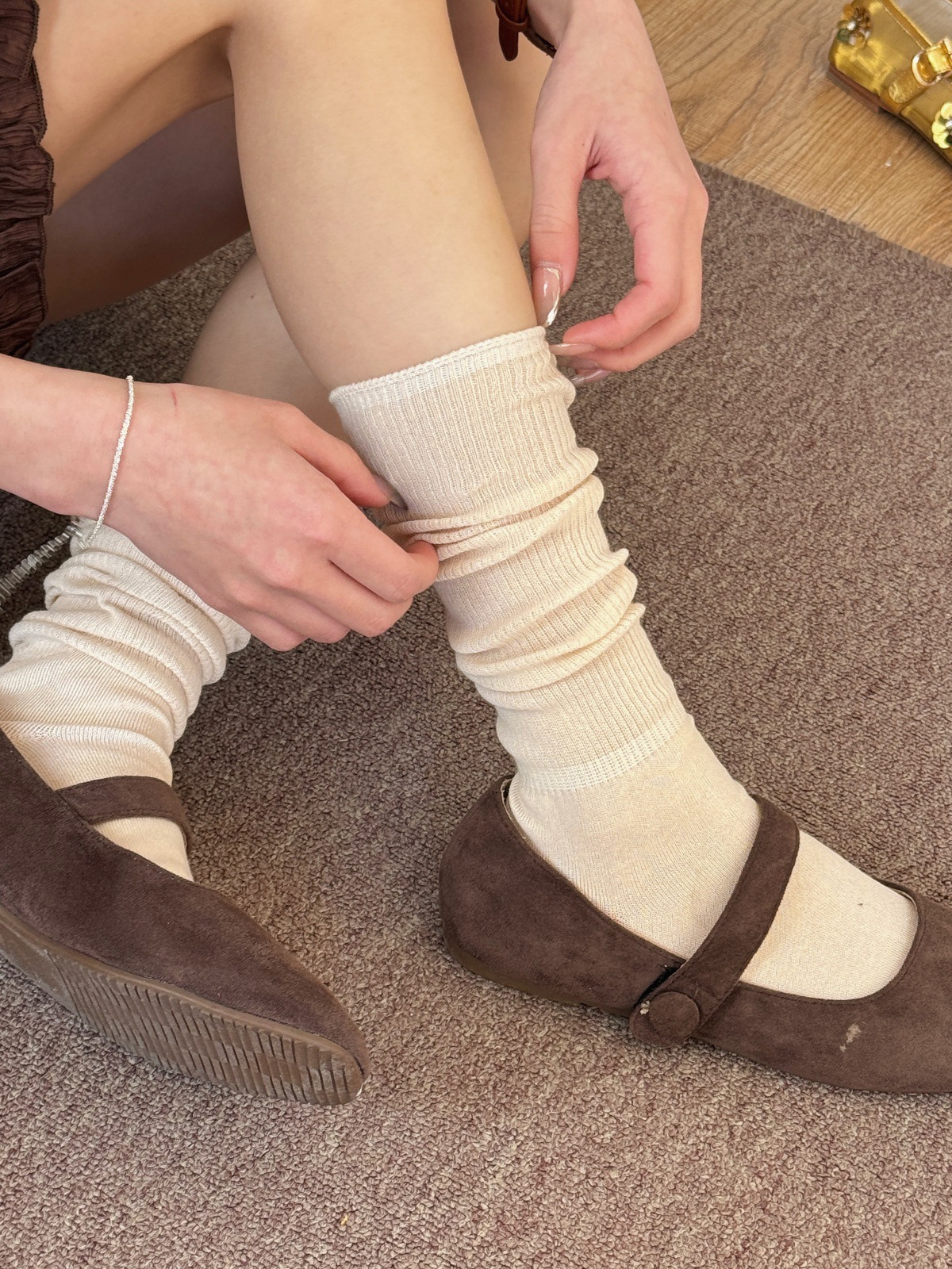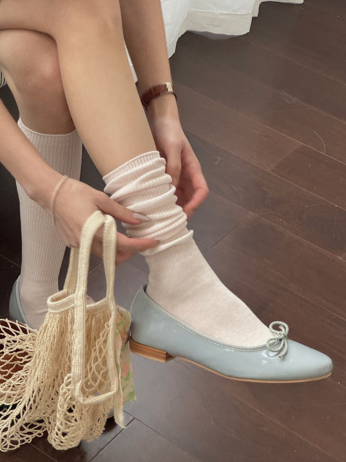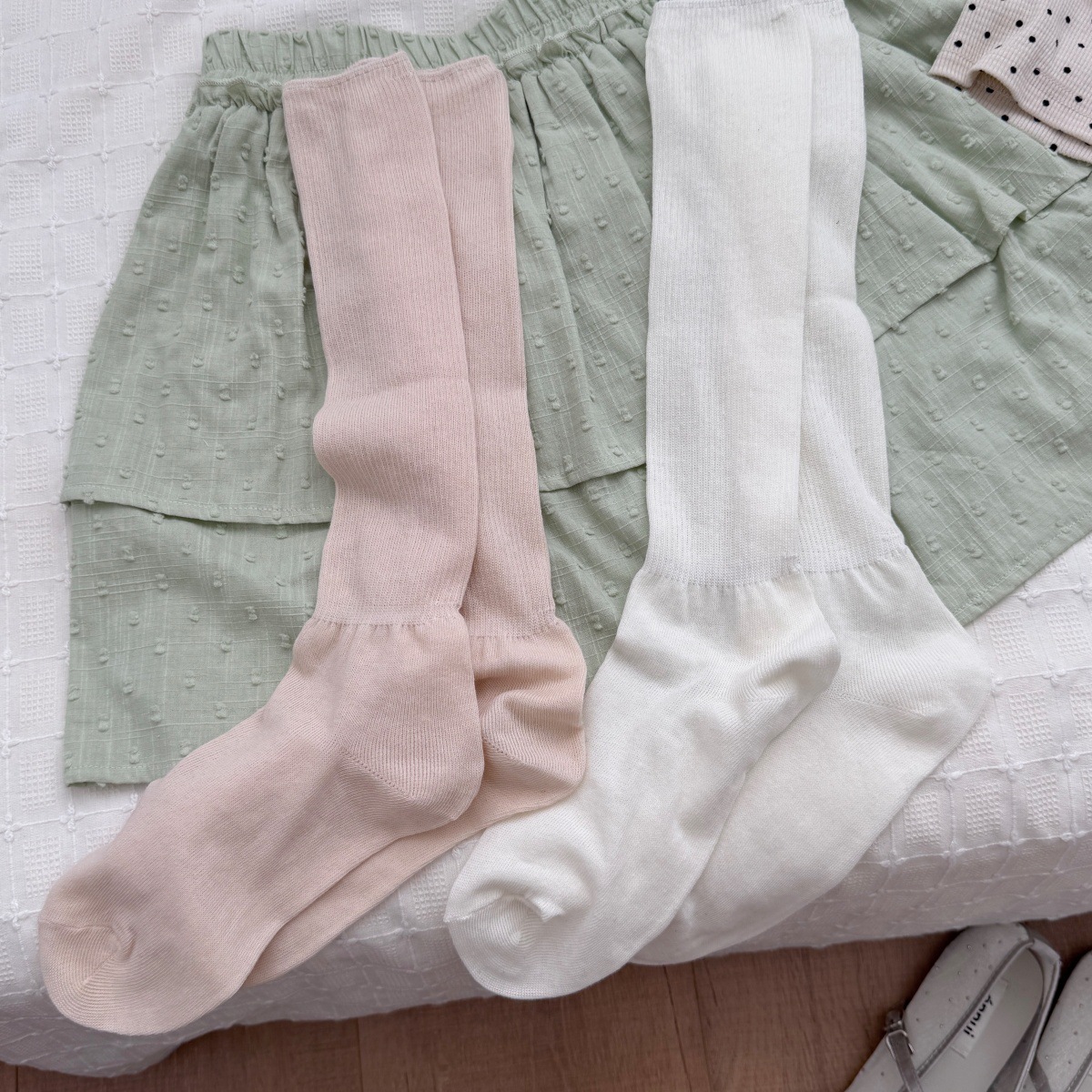 IOULOR 파일 양말 여성 miu 바람 캣워크 얇은 스타킹 봄과 여름 게으른 통기성 더미 높은 양말 도매스토어 가기