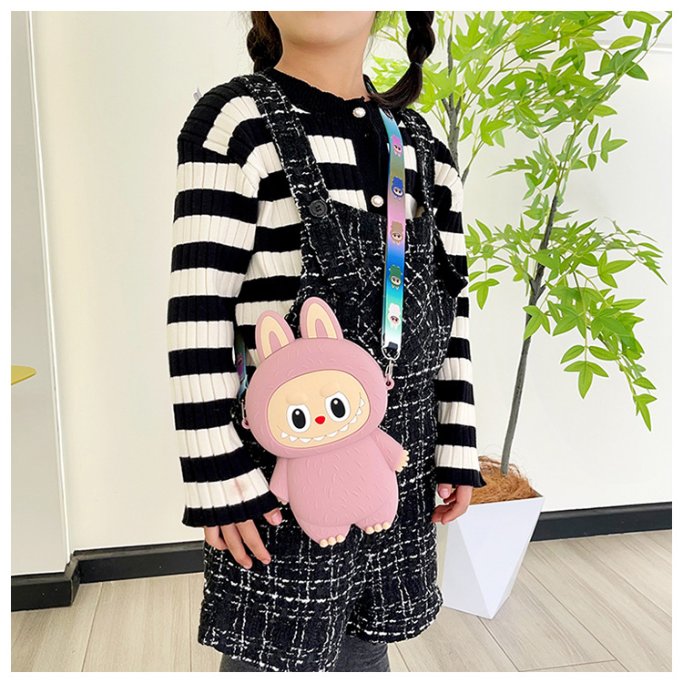 국경 간 인기 어린이 만화 동전 지갑 Labubu 학생 가방 야외 휴대용 보관 헤드폰 가방 도매