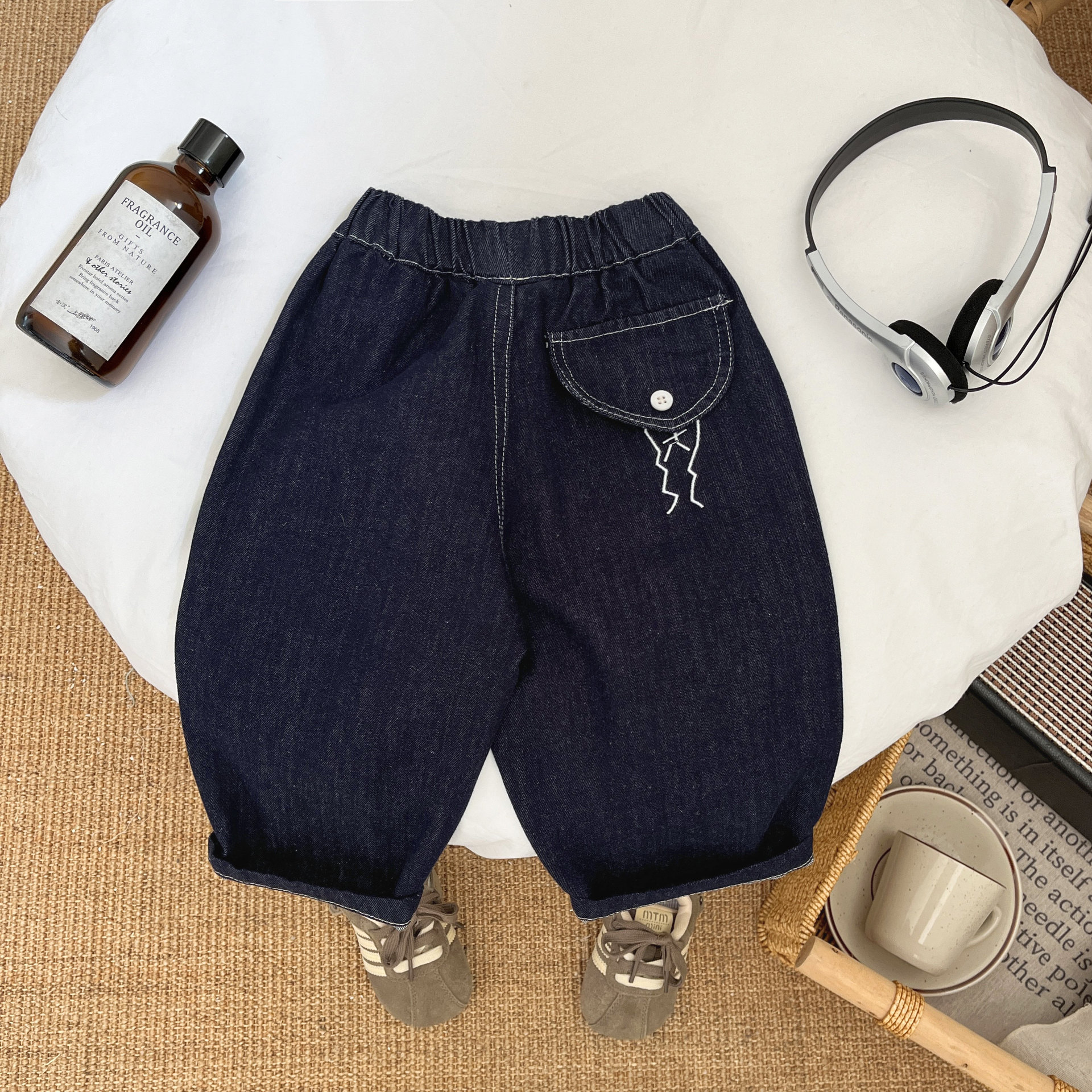 어린이 활동적인 청바지 2025 봄과 가을 새로운 잘 생긴 소년 캐주얼 바지 느슨한 페이드 스트레이트 바지스토어 가기