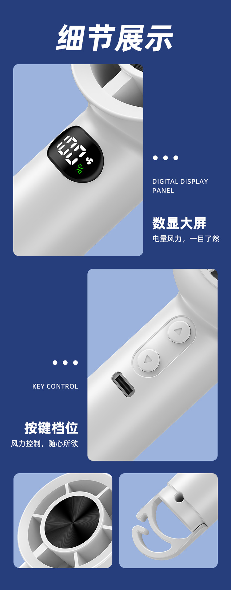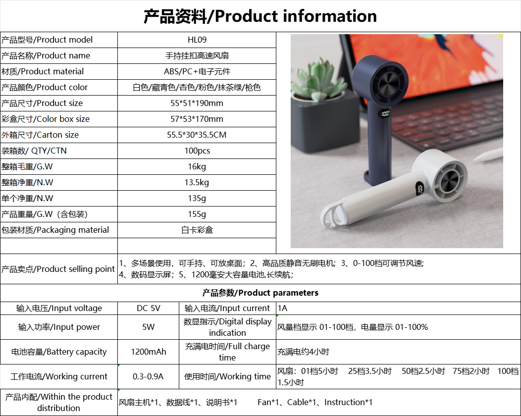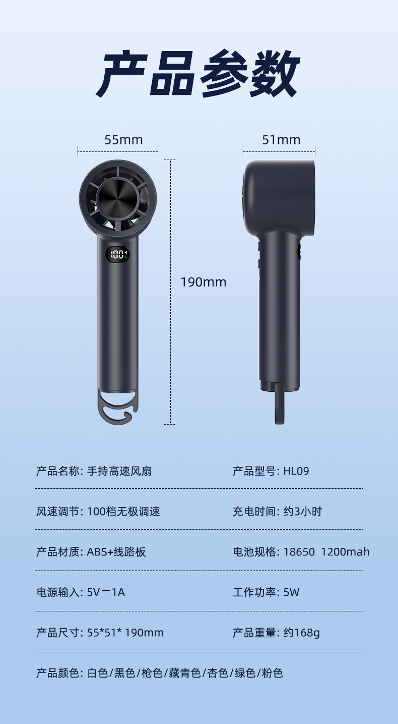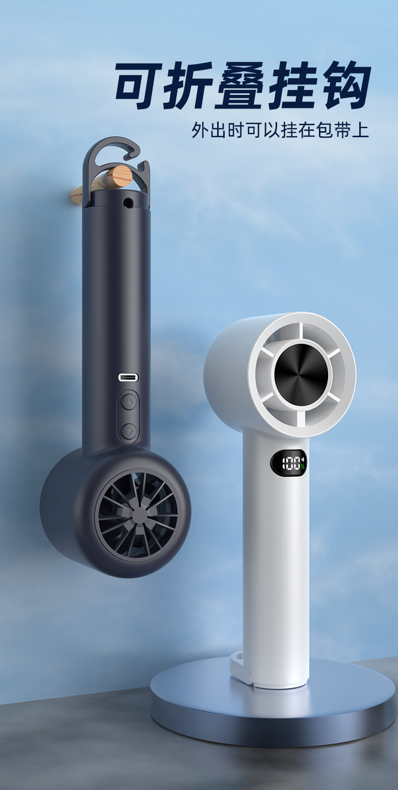 새로운 100 폭력 터빈 작은 팬 usb 충전 큰 바람 야외 후크 휴대용 고속 핸드 헬드 팬
