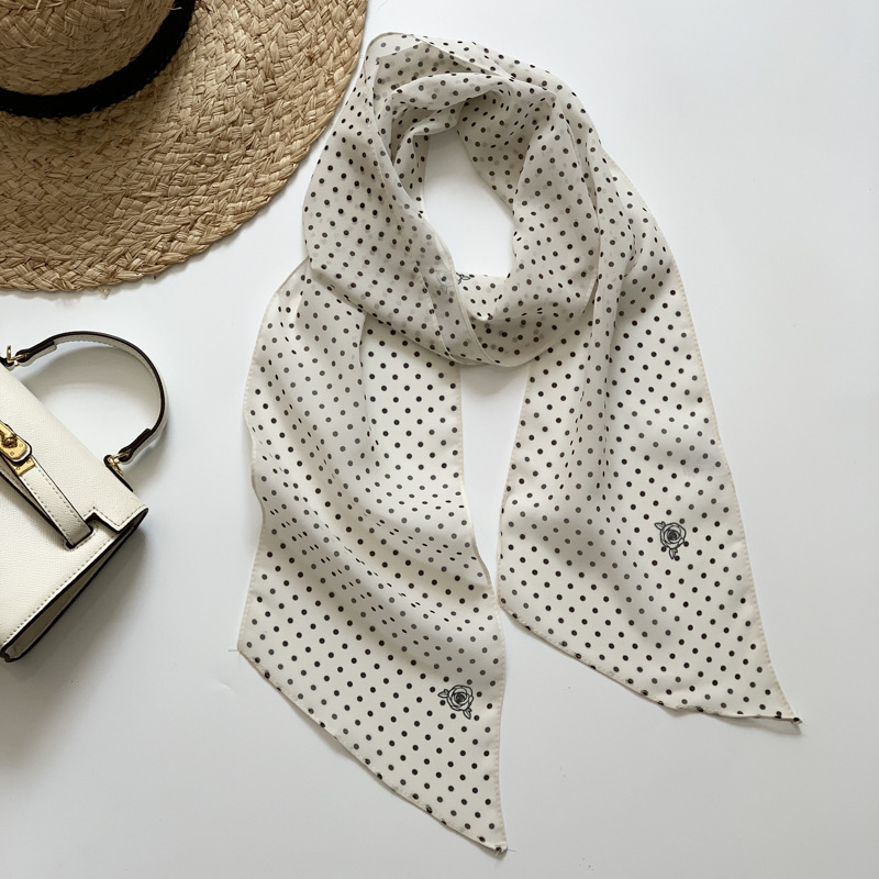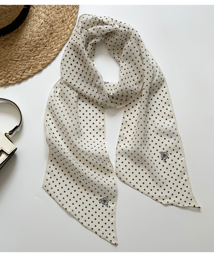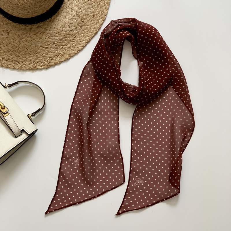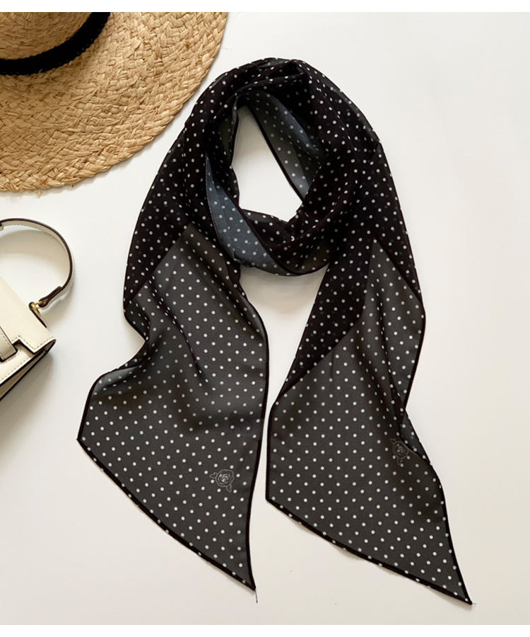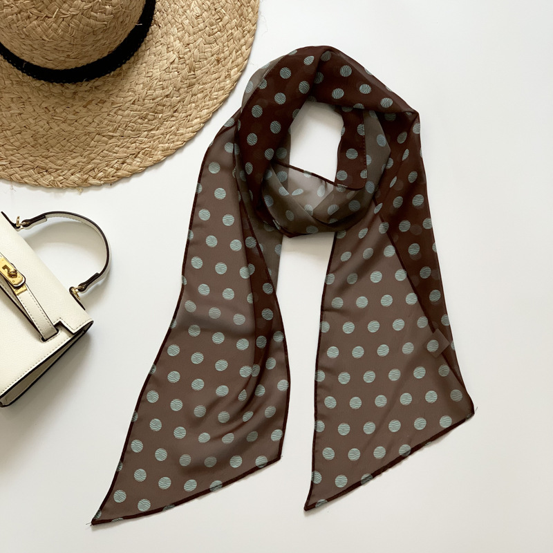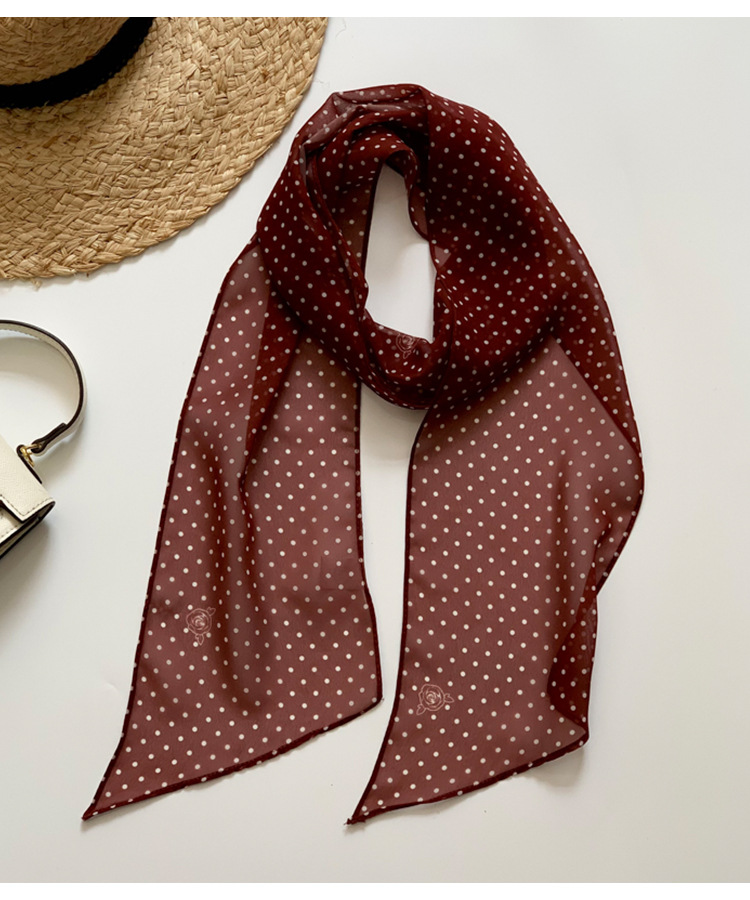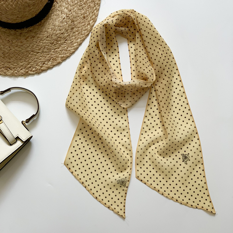 여성을위한 로즈 폴카 도트 작은 긴 머리띠 스카프 봄, 가을 얇은 허리 스카프 바인딩 스트립 장식 스카프 머리 스카프