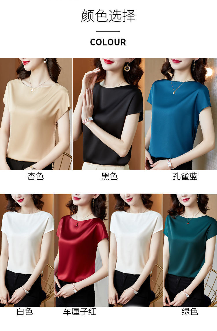 Acetic Acid Fabric Satin 탑 하이 엔드베이스 셔츠 여성의 봄과 여름 실키 웨스턴 스타일 원피스 어깨 반팔 티셔츠스토어 가기